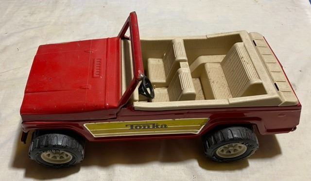 Vintage Tonka Metal Red Jeep Convertible - 12.5” x 5” x 5.5”