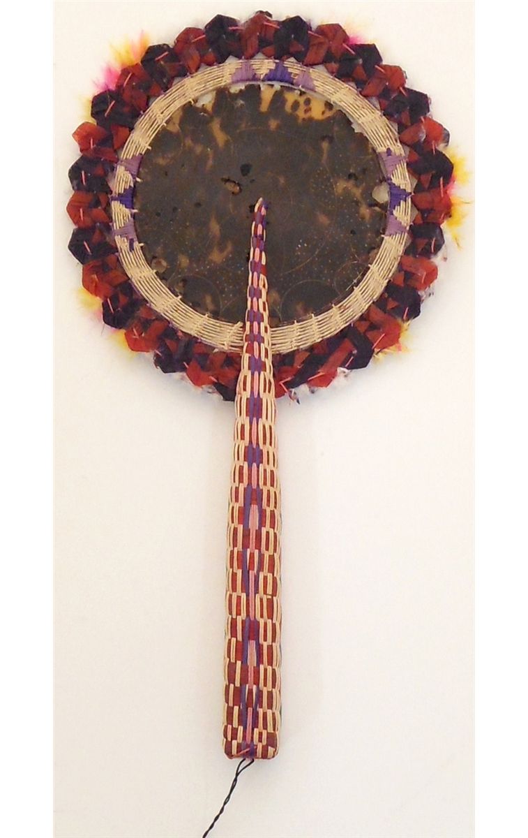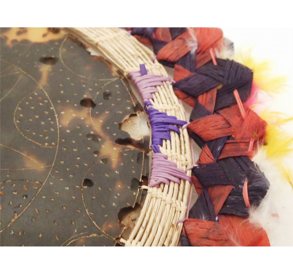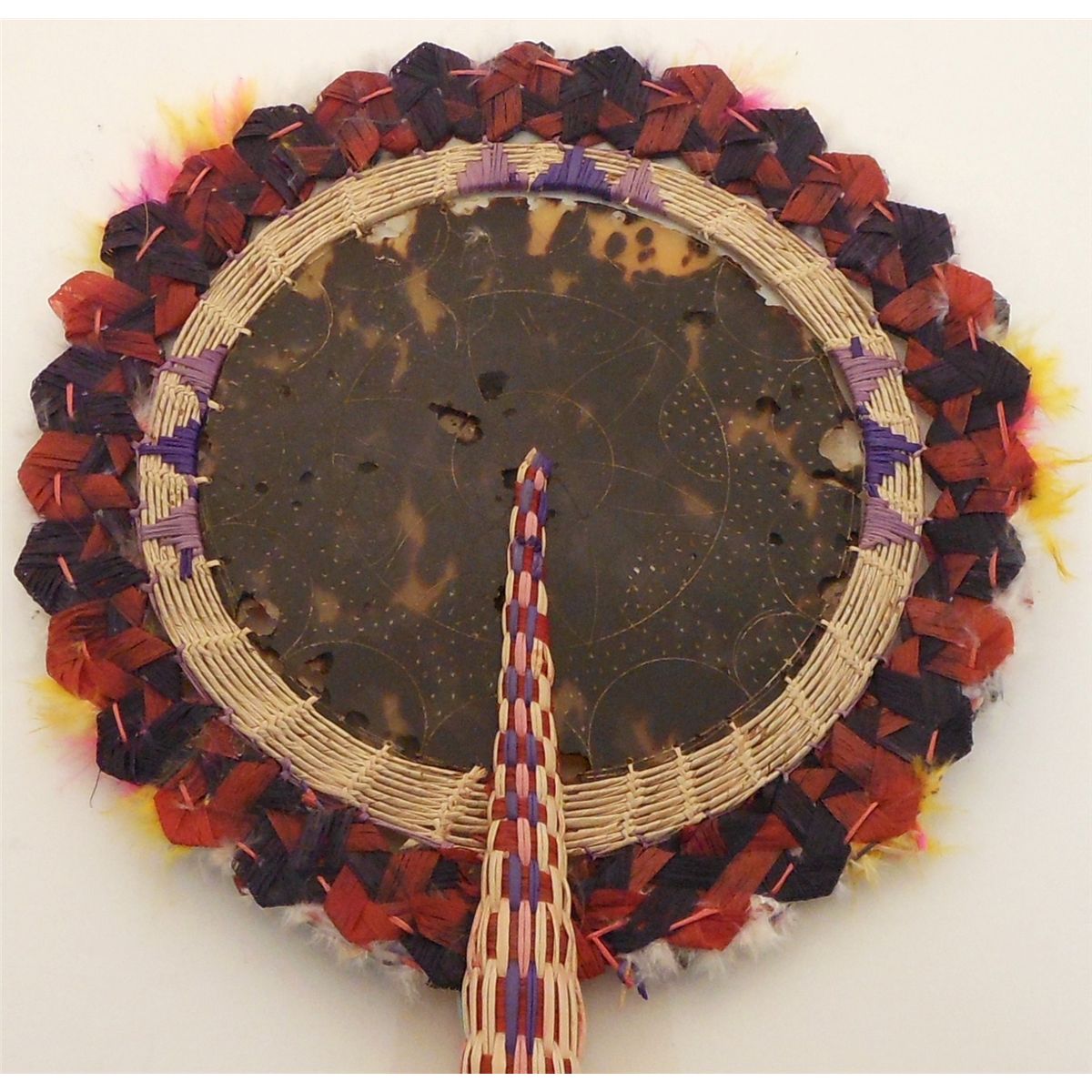 12" at Tallest and 6 1/4" at Widest. Tortoise Shell is 4" Diameter. Vintage Tortoise Shell Fan. Was either an old Carnival Prize or Souvenir from an Island. Was Made by hand with weaving techniques. Great Condition with some loss/chips to the shell and shell is coming loose from the rest of the fan in one section. (See Pictures)