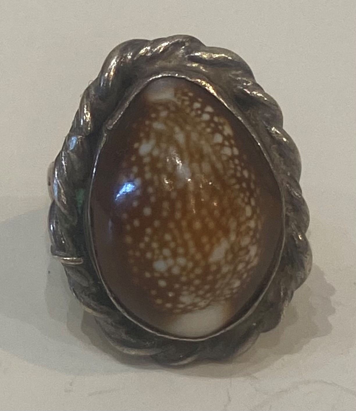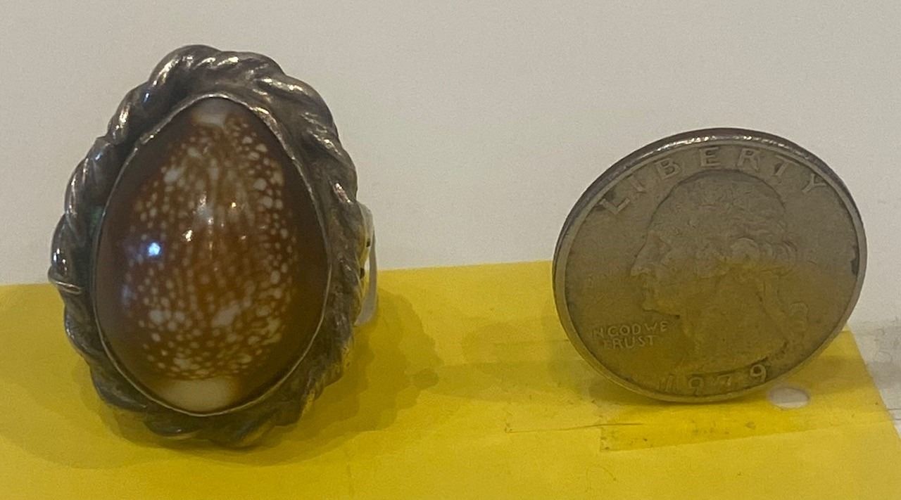 Vintage Tortoise Shell and Sterling Ring Size 8 Truly awesome ring 15 grams