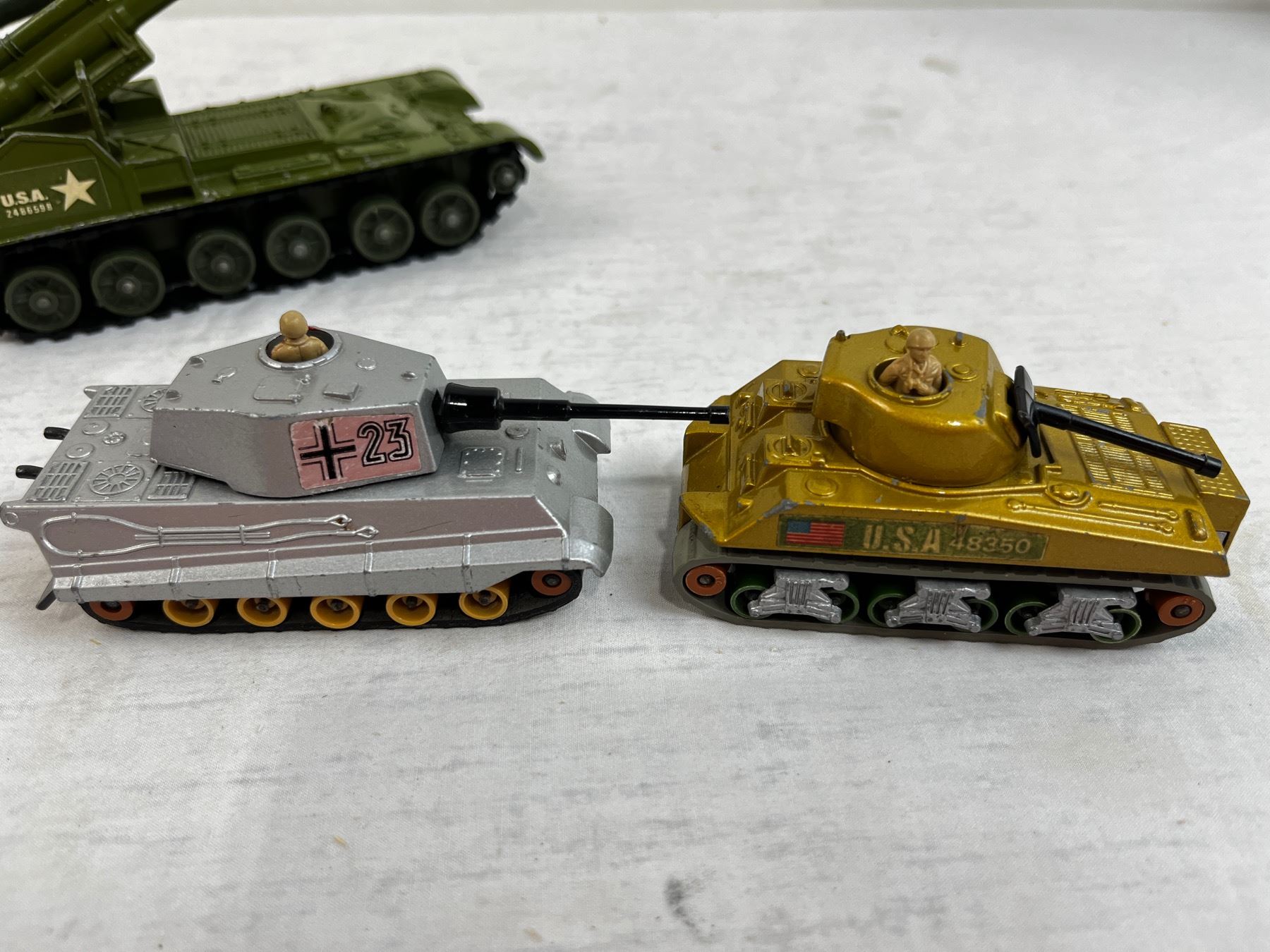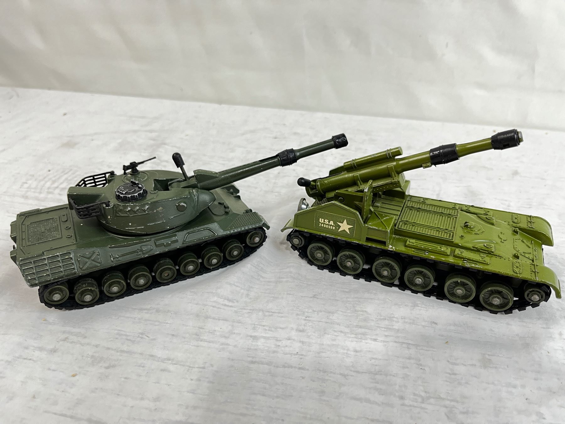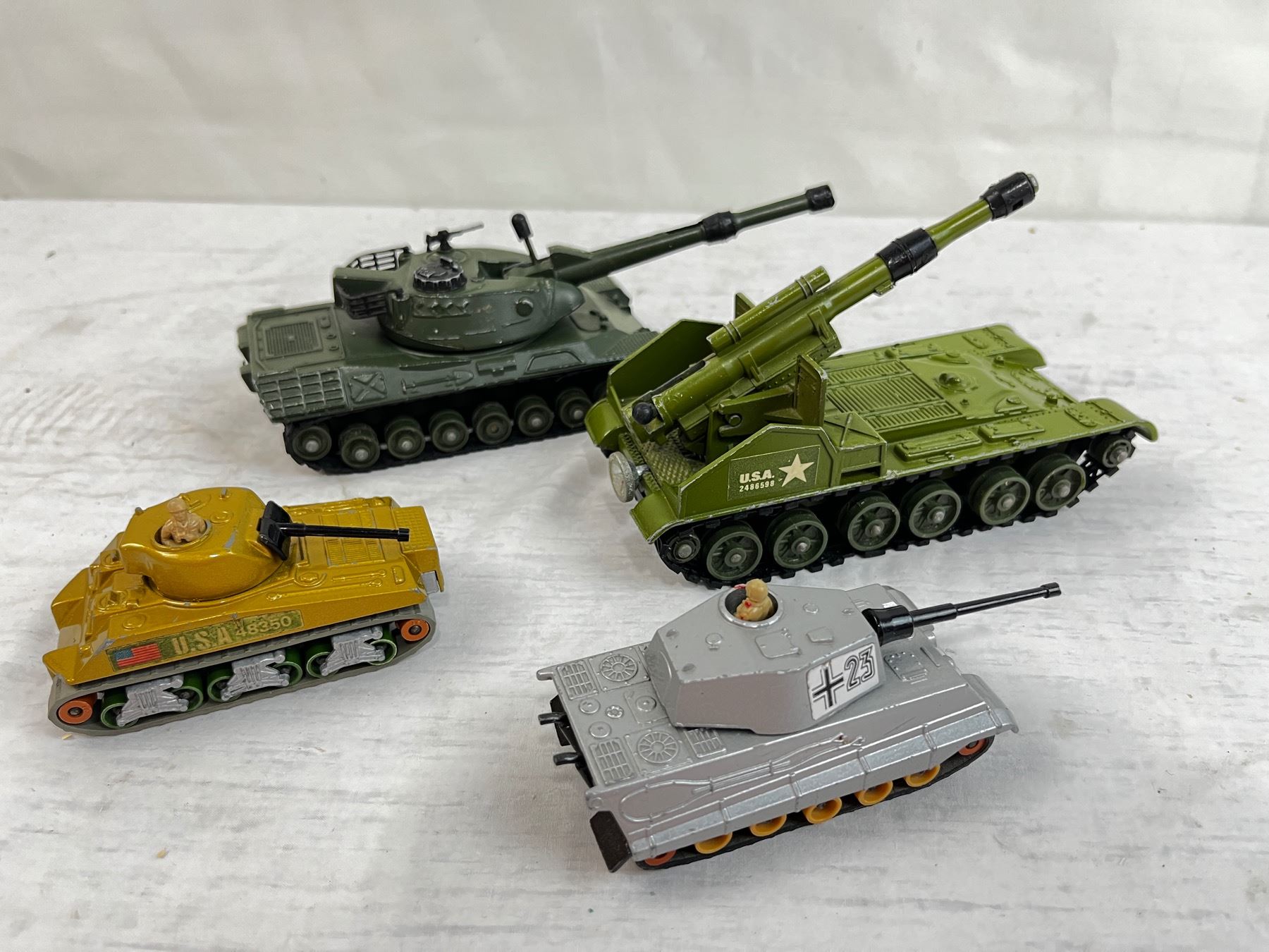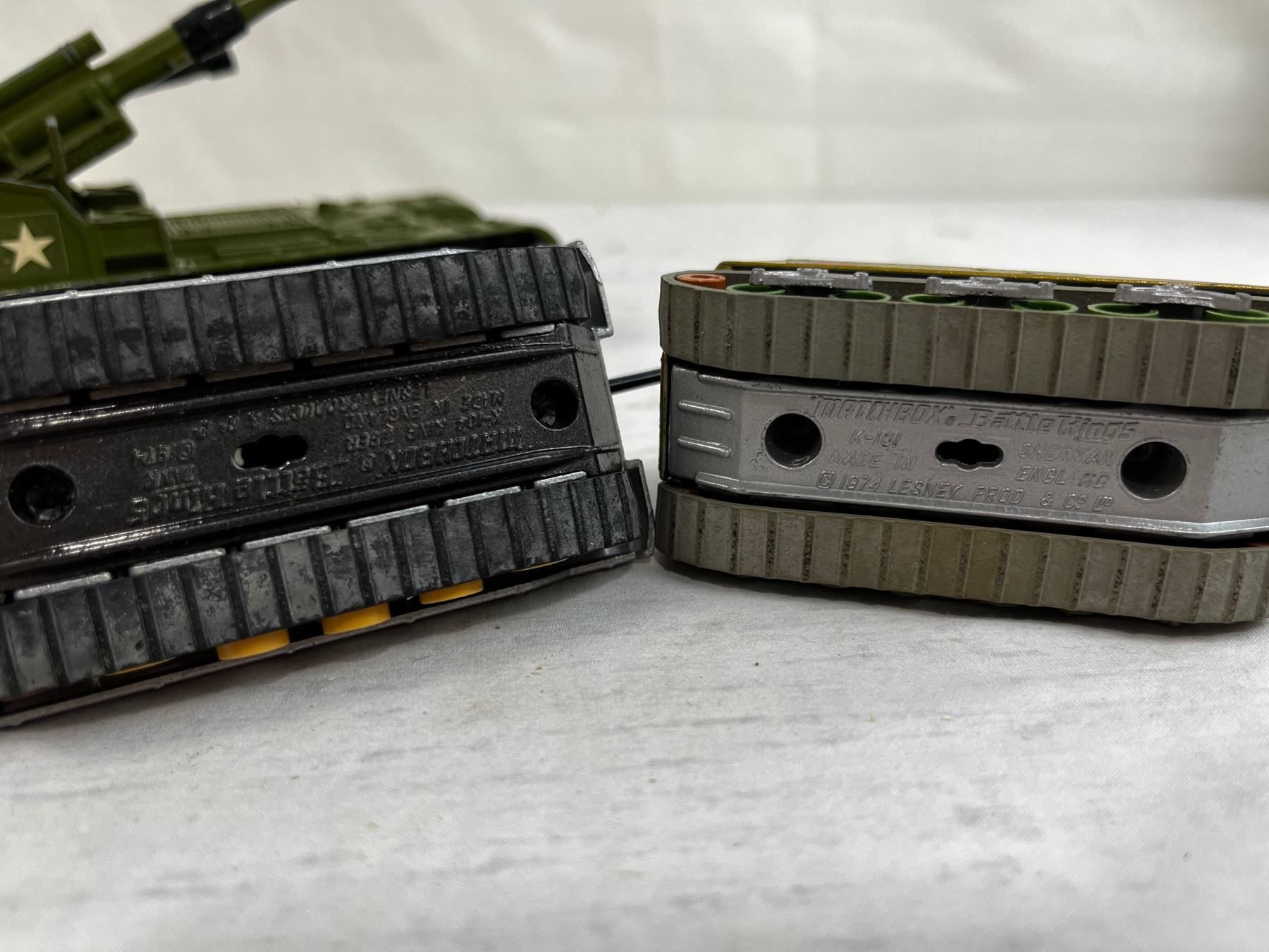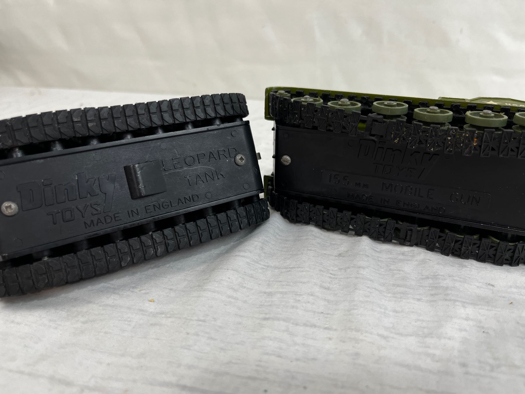 2x match box battle kings, 2x dinky tanks; 155mm mobile gun,leopard tank