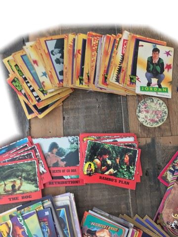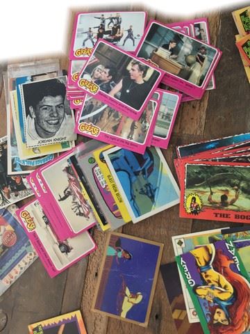 Large Collection of ~100 trading cards from varios iconic movies, shows, and cartoons. From the" Garbage Pail Kids" created in (1985) by the Topps Company designed to parody the Cabbadge Patch Kids. From the movie "Grease"(1978) one of the most popular musicals of all time. "New Kids On The Block" selling more than 70 million records worlwide throughout the(1980's-90's), the group broke up in 1994 and reunited in 2008. The Collection also includes "Power Rangers", "Rambo", and many more.