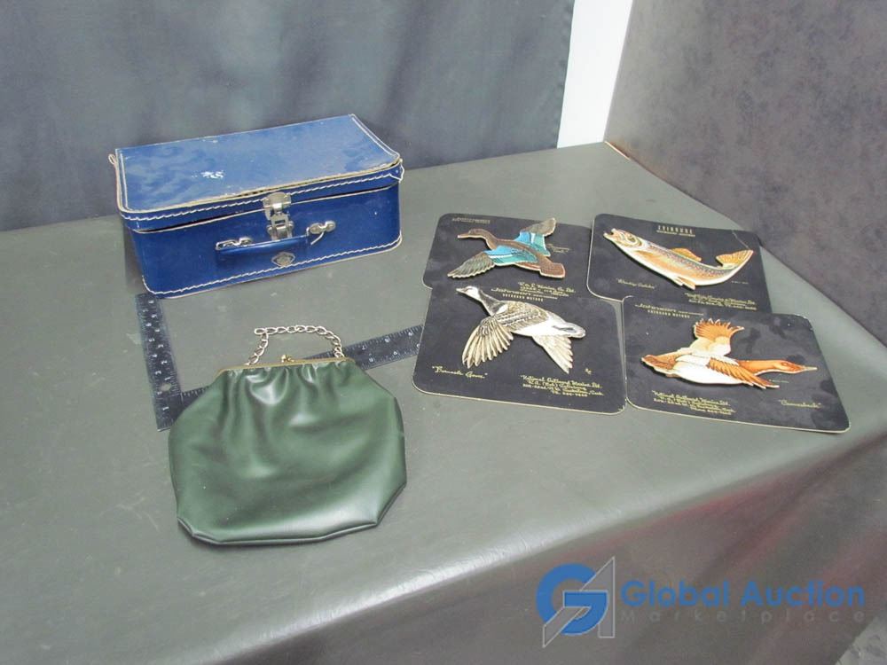 Vintage Travel Case, Purse, Red Rose Tea Figurines, etc