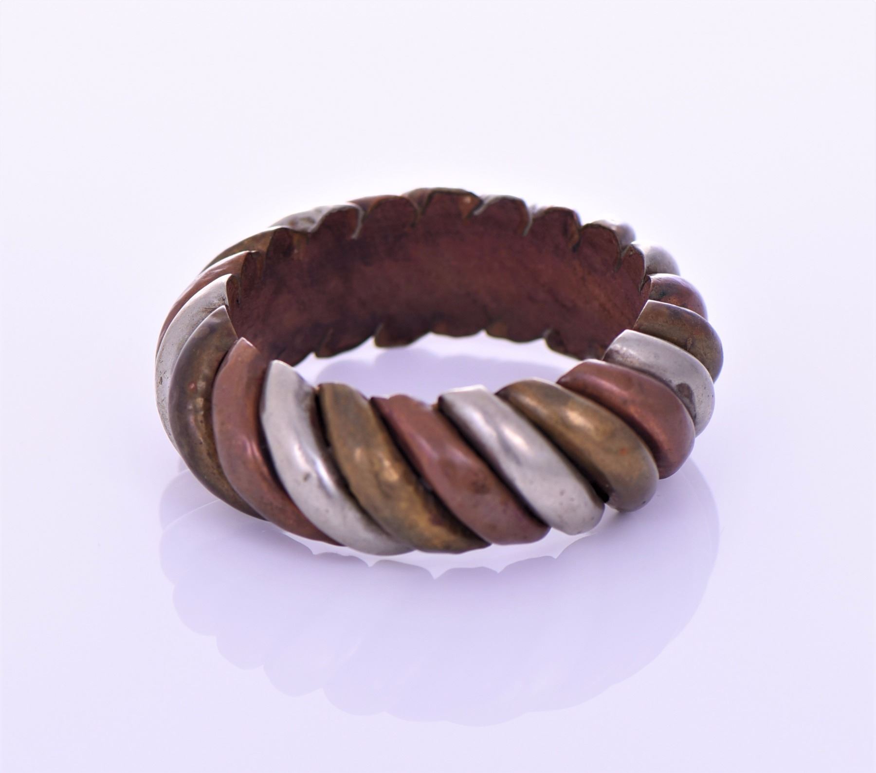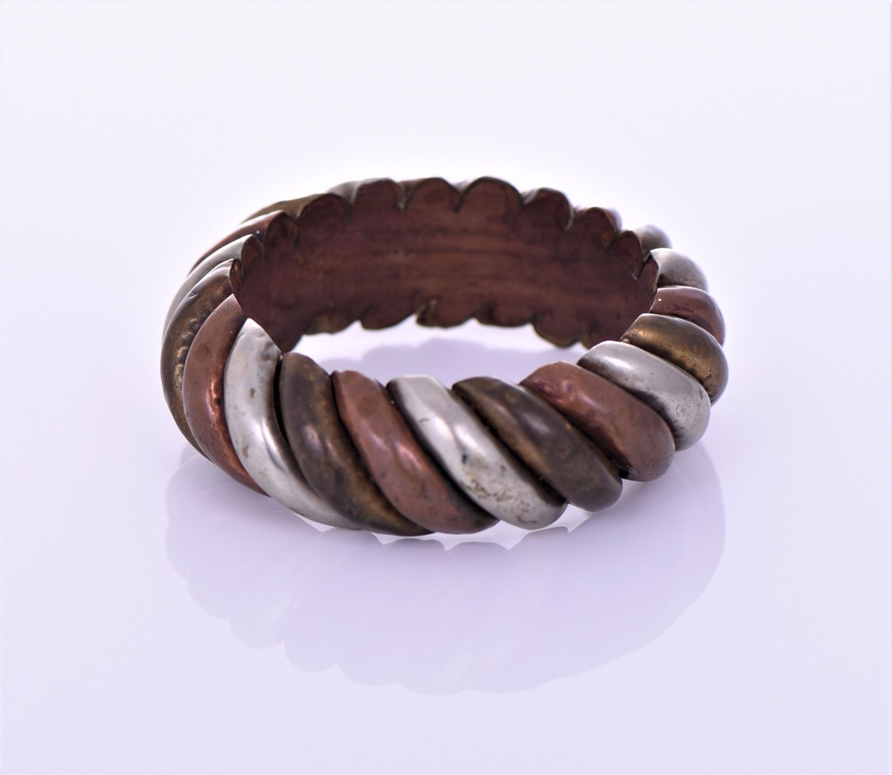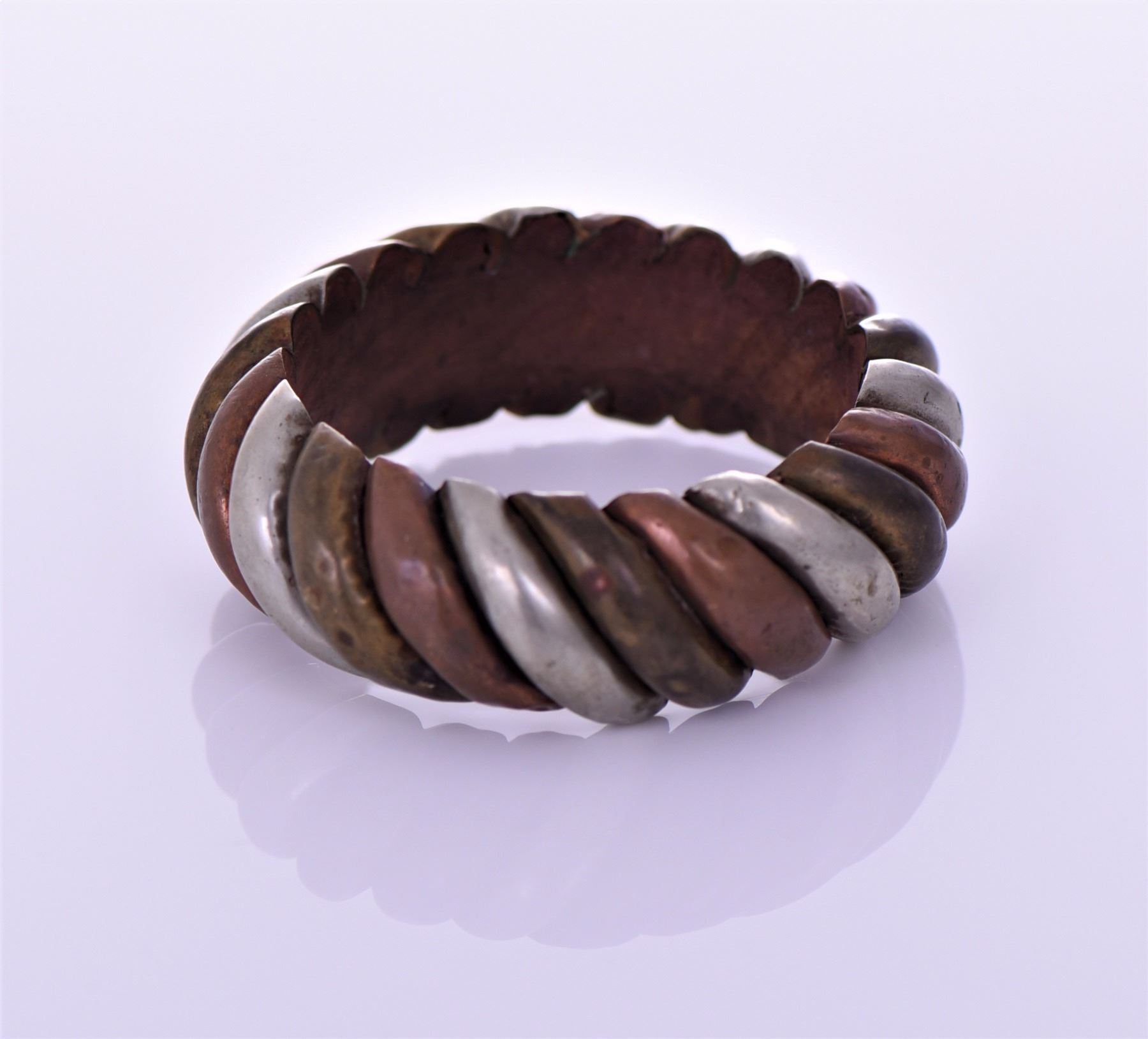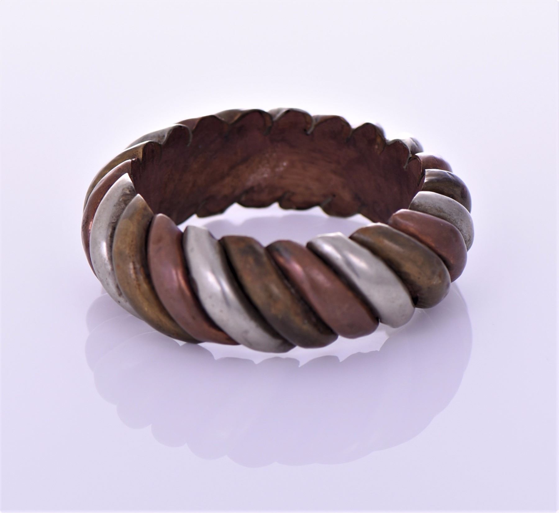 Vintage Triple Metal Over Wood Bangle. Estimated more than 50 yrs. old. Size and/or Weight: See Measurement Photo. (Photos Represent The Lot Condition, Pangaea Auctions)
