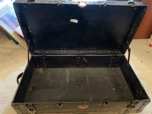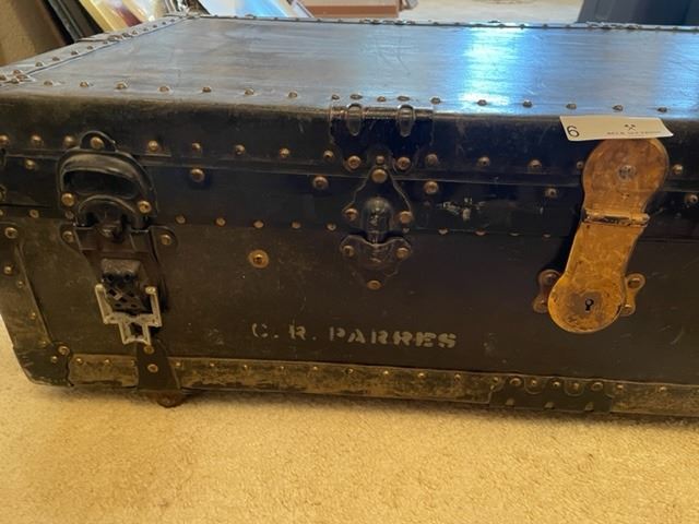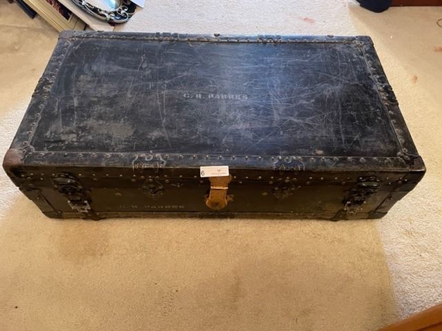 Large vintage C.R. Parres trunk. 39" wide, 20.75" deep, 12" high.