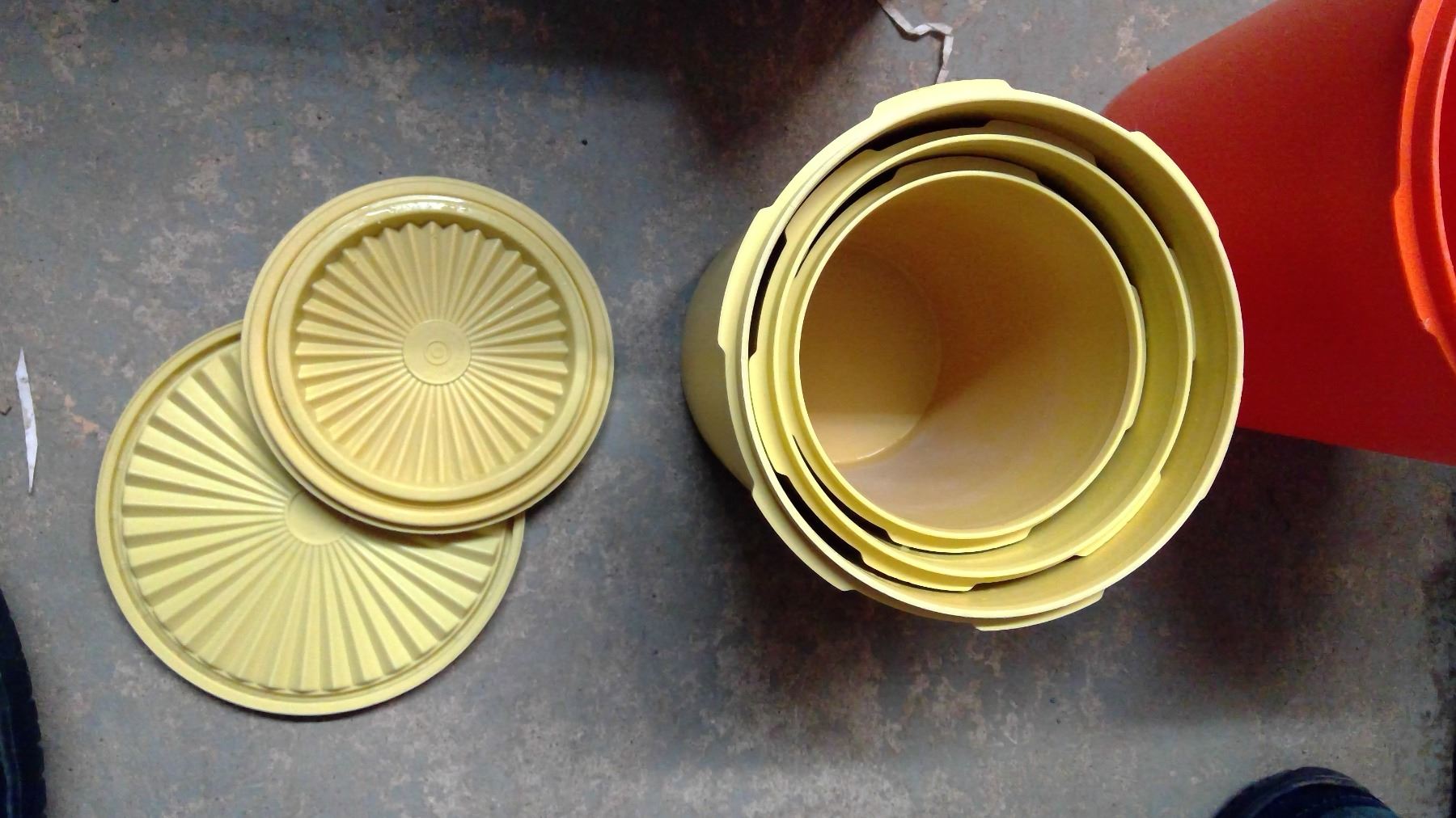 Vintage Tupperware Containers (1 Orange, 3 Yellow)