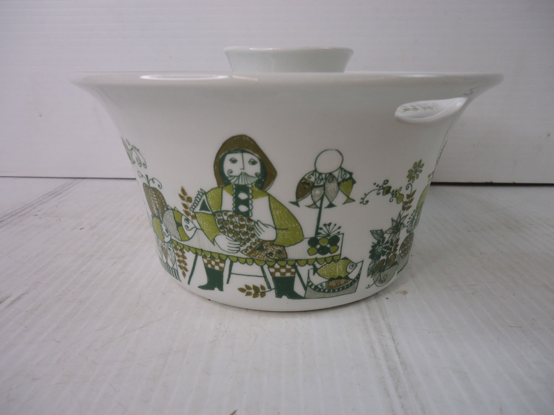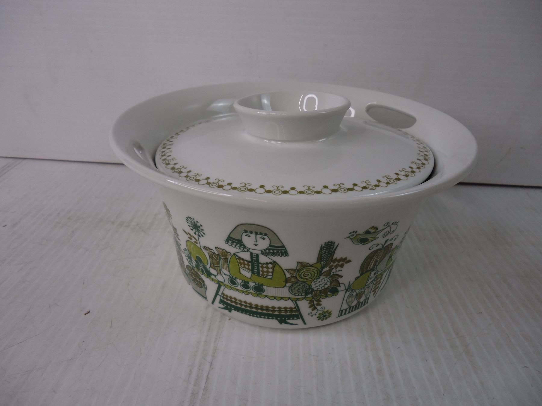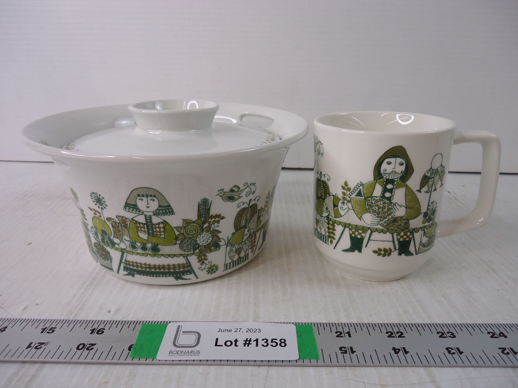 Vintage Turi Design Green Market Norway Casserole Dish with Cover and Coffee Mug
