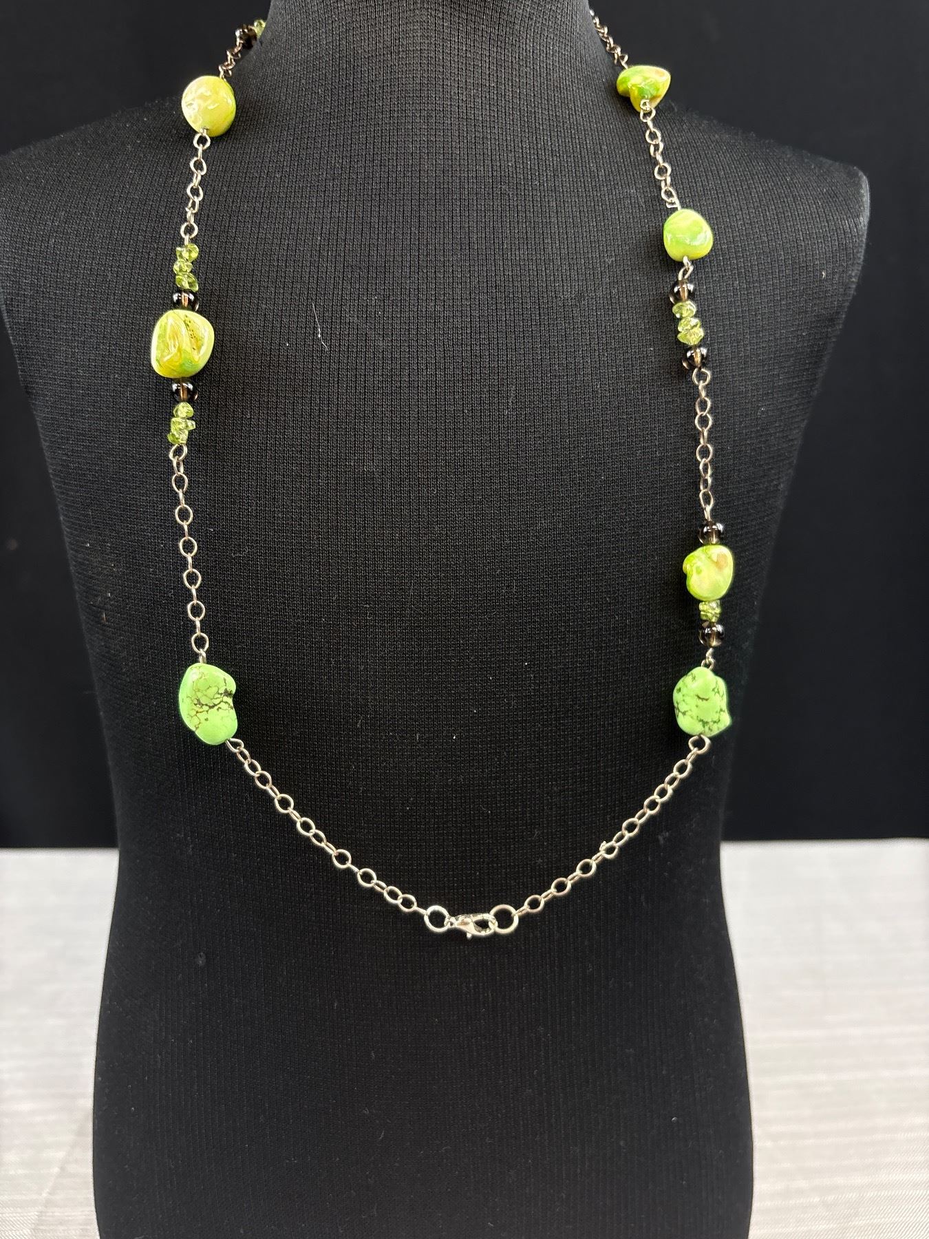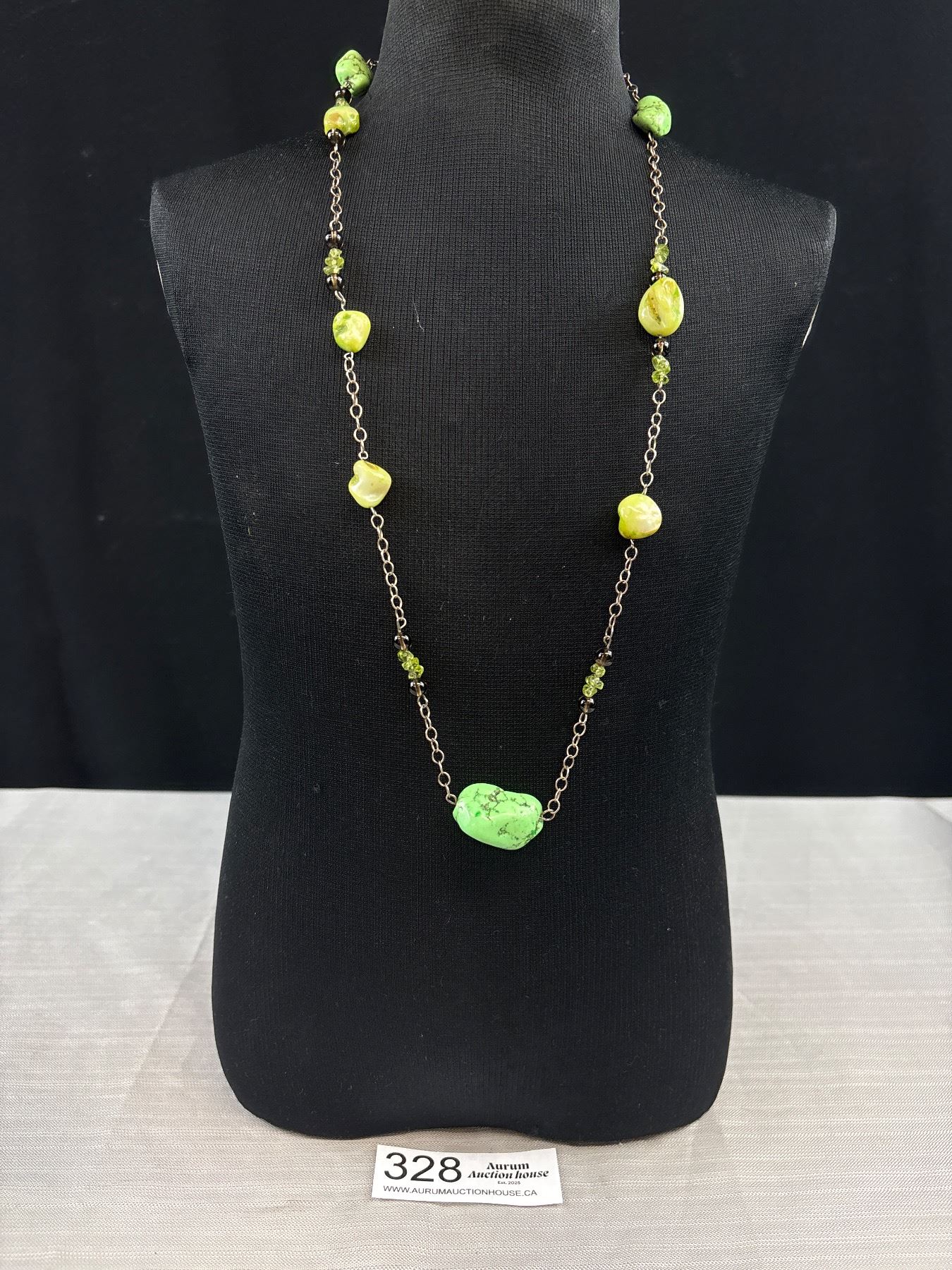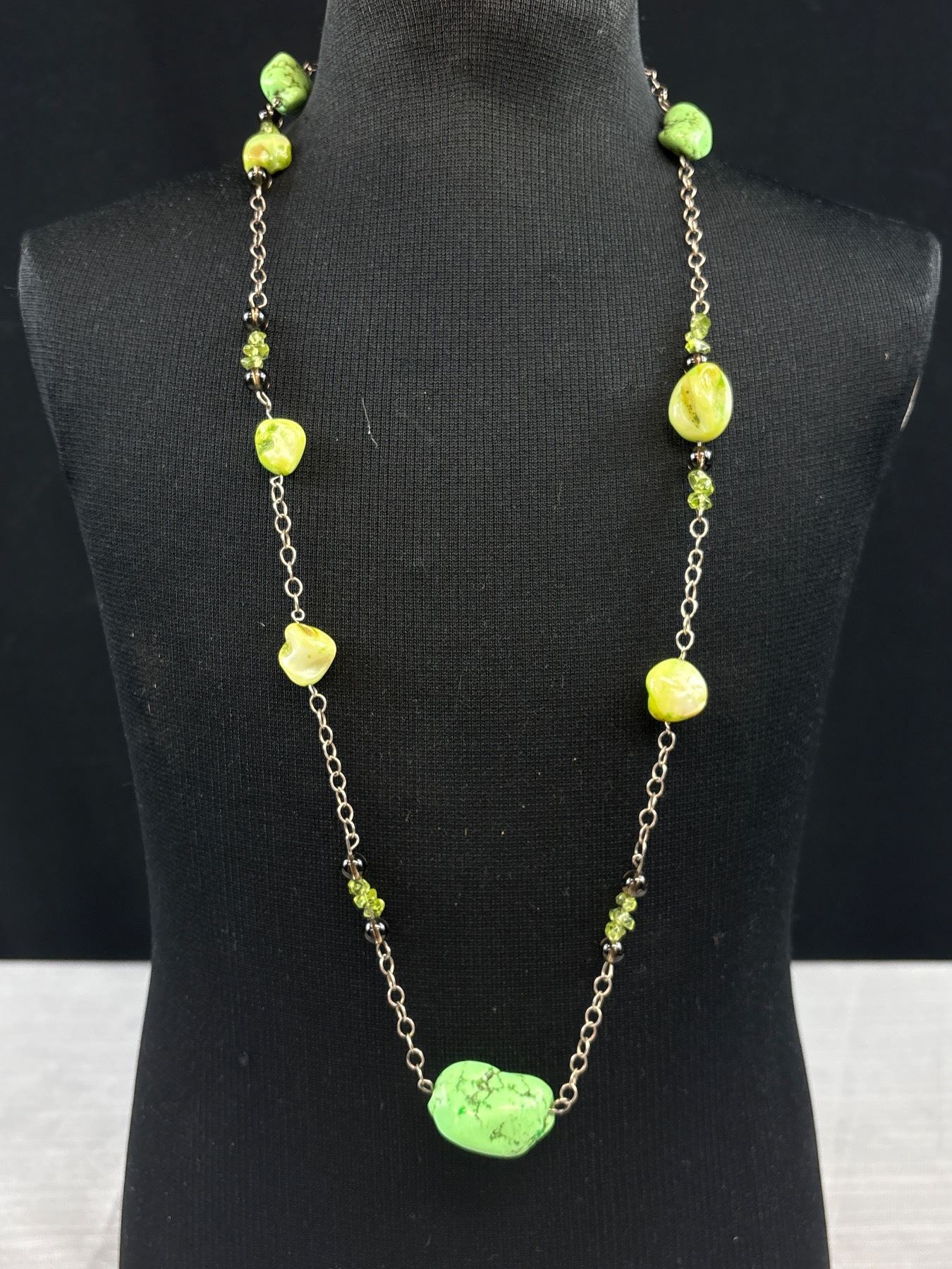 Vintage Turquoise + Amethyst, Peridot Stones Necklace
