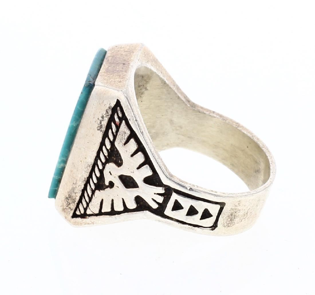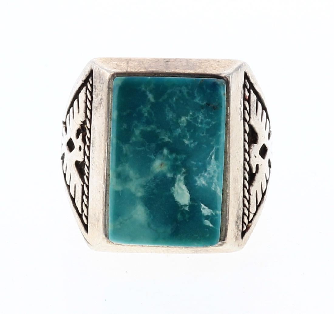 Sterling Silver | Genuine Turquoise | Vintage Turquoise Bird Ring | Navajo Native American Southwest Indian Jewelry | Weight:23 Grams, | Dimensions: Ring: 11.75 size, 1" face width |