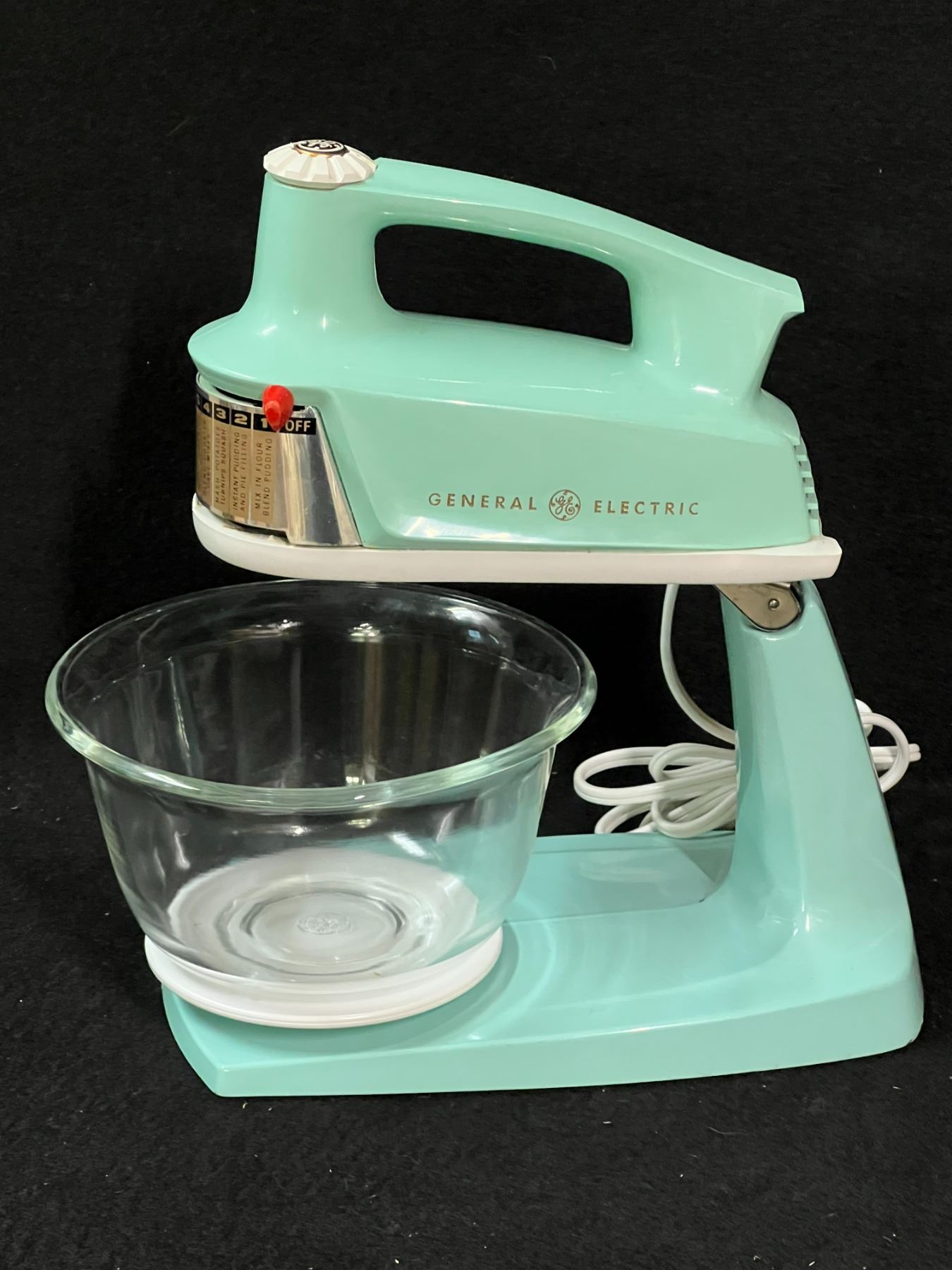 Condition is quite nice. The mixer can be removed from the base to use by hand. The motor works well and adjusts well to the various speeds. No beaters are included and may require a specific kind. Approx: 11"W and 12.5"T
