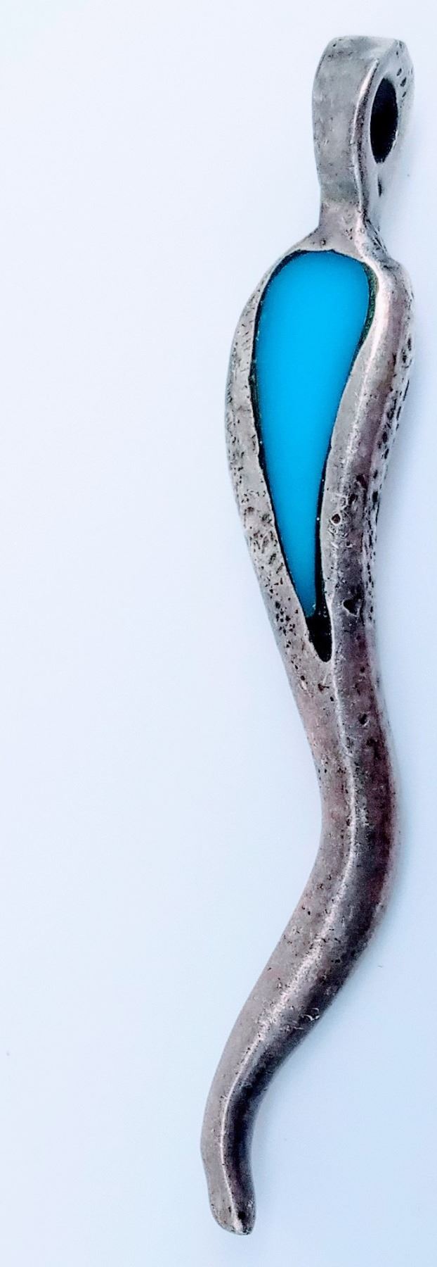 Vintage Turquoise in sterling silver horn pendant. In good condition.