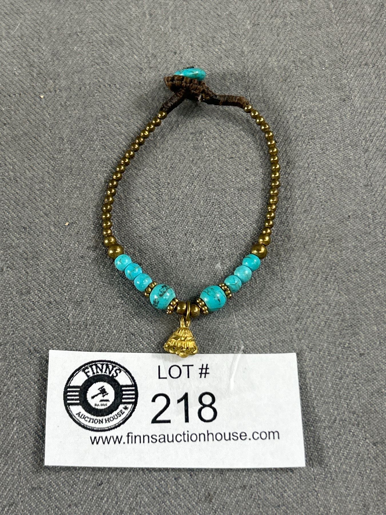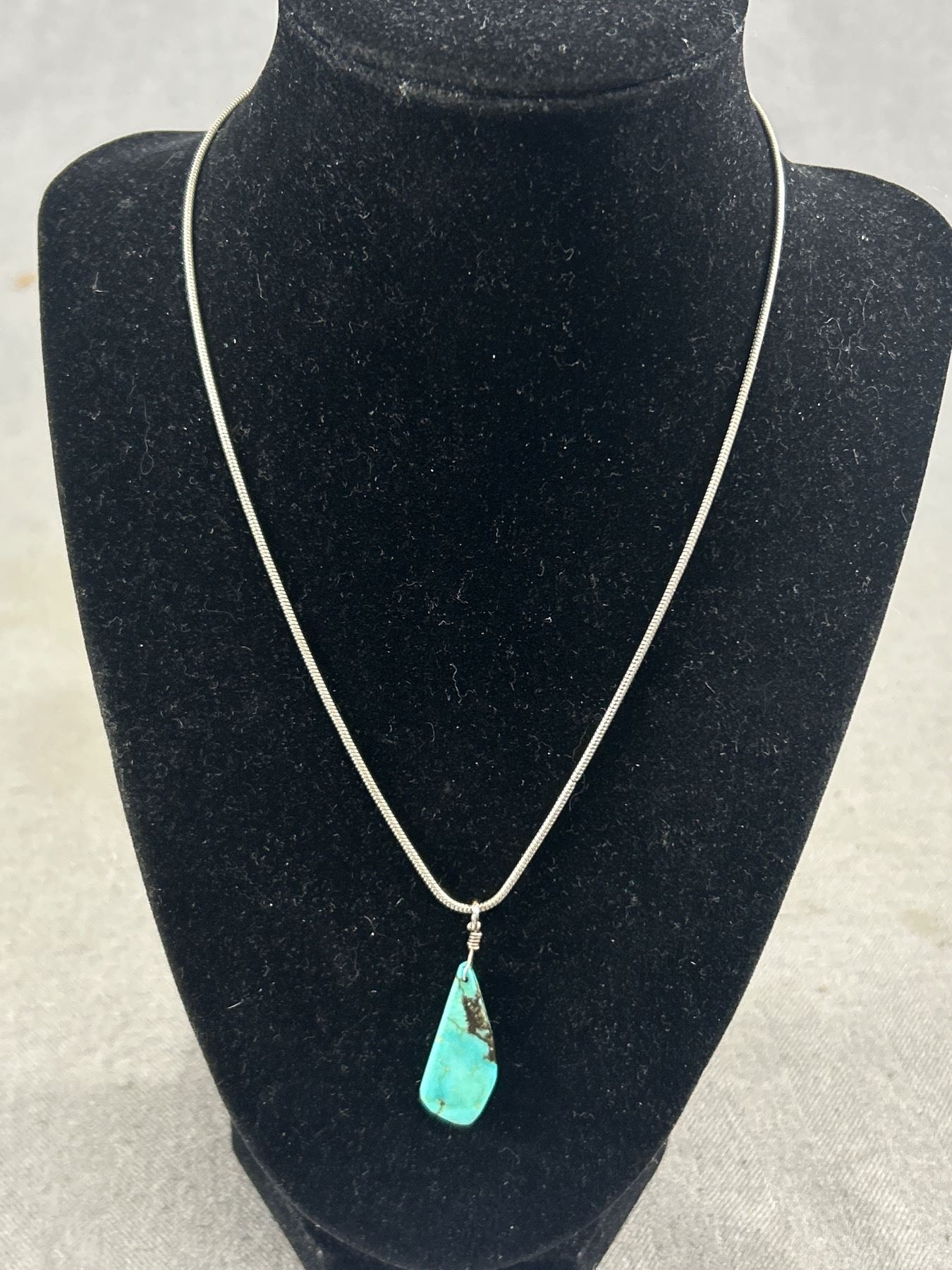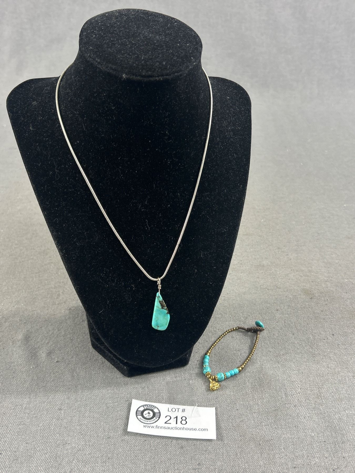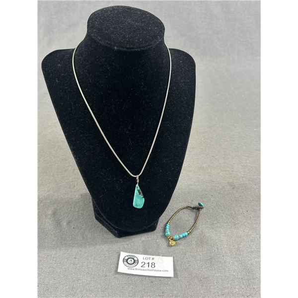 Vintage Turquoise Pendant with Chain Neclace & Bracelet