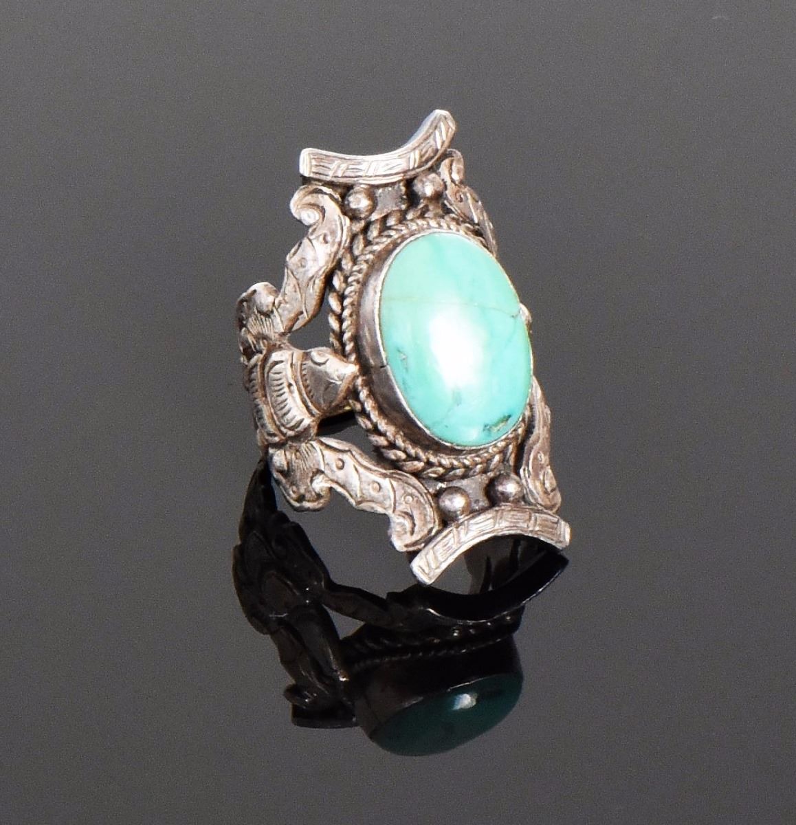 Vintage Turquoise Sterling Silver Ring With Moth or Bee Design. Ring Size: 9 Estimated more than 50 yrs old. 925 Sterling Silver consisting of 92.5% silver and 7.5% copper. Tested Positive using Nitric Acid Chemical Scratch Test, Cloth Rub Test, Smell Test, and Magnet Test. Markings of 925 or Sterling stamp. The reason silver needs to be combined with other metals is that it is very difficult to make great designs with just pure silver, which is very soft and malleable. A bit of hardness has to be introduced by adding other metals such as copper. That is why jewelers are capable of making the most intricate an complex designs with 925 Sterling Silver. Silver is one of the most valuable elements next to gold. Mexico is the leading producer of sliver, followed by the United States, Canada, Australia, Spain, Peru, and Russia. Many countries do not require their precious metal items to be stamped and therefore we test to ensure we accurately represent the product. Size: See Ruler Photo. (Photos Represent The Condition Of The Lot.)