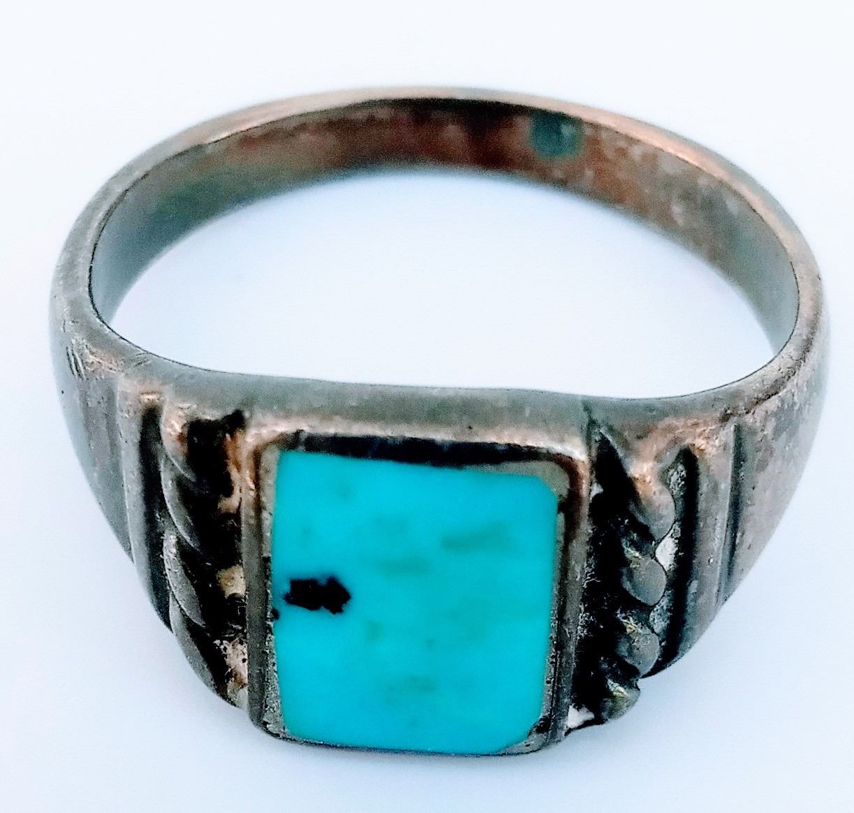 Vintage Turquoise in sterling silver ring. Size 10 In good condition.