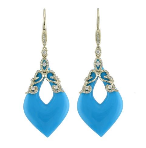 Vintage Turquoise w/ Diamonds Drop Earring in 14K Yellow Gold | 421091 Grams, featuring 29.65 White Diamond Round ct 2 0.47 ct 100 ct 14 ct