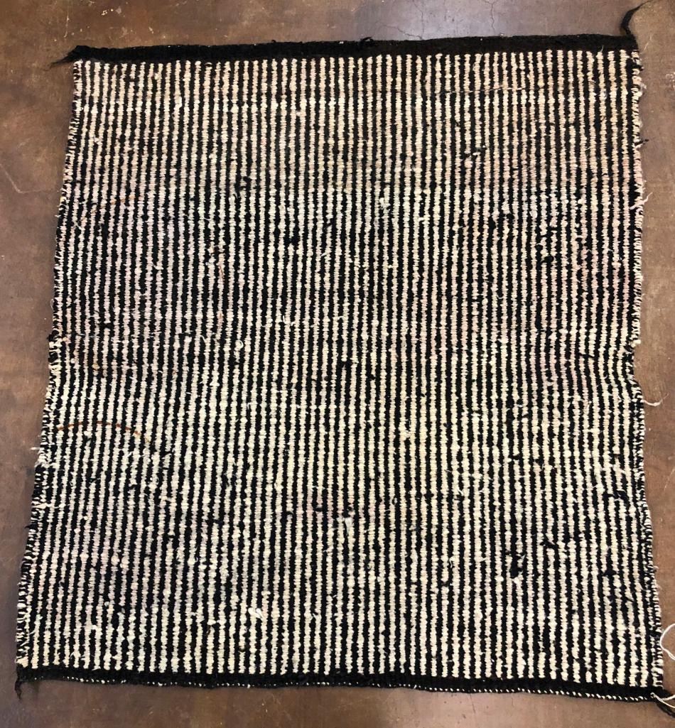 Presented for sale in this lot is a vintage twill weave Navajo saddle blanket featuring blacks and whites in a striped twill pattern. Maker: Unknown Navajo weaver. Approx. Age: Vintage. Size: 30-1/2 inches wide X 34 inches long. Condition: Good for its age, normal wear expected. Please look closely at the pictures - they are an important part of our description. Shipping: There will be a $5 handling / packaging fee for shipping this lot. The actual cost of postage will be added on top of that. BUY IT NOW: If you would like to buy this item now without waiting for the auction to end (this option is only available up to 48 hours before the auction starts to close), the “Buy it Now” price is the high estimate of this lot. If you would like to end the auction early and pay the high estimate (plus applicable fees), please contact us by phone or email and reference this lot number.