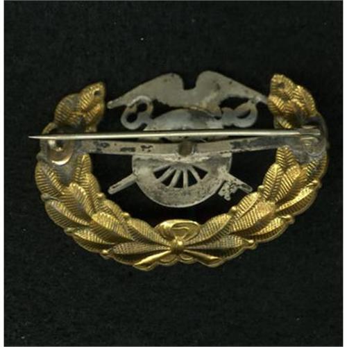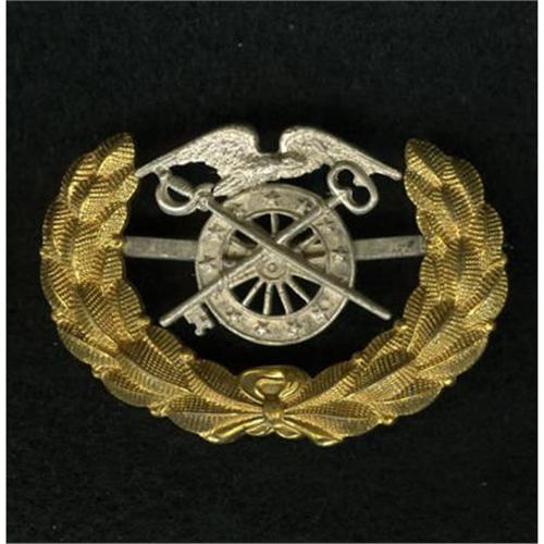 <B>Vintage U.S. Army Cap Badge Circa 1903-1910.</B></I> Brass/silver. Vintage U.S. Army quartermaster's sergeant cap badge. The outstanding cap badge is of superior quality but without any maker's mark. The approximate period of use is between 1903 and 1910.<BR><BR><b>Shipping:</b> Coins & Currency (<a target="_blank" href="http://www.heritageauctions.com/common/shipping.php">view shipping information</a>)