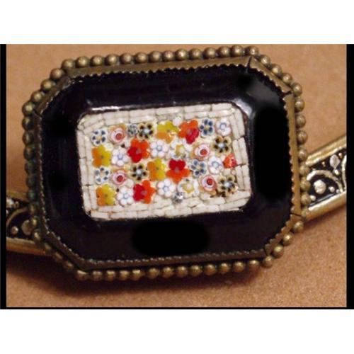 <tr><td>Title:Vintage UNUSUAL BLACK Micromosaic BROOCH</td></tr>