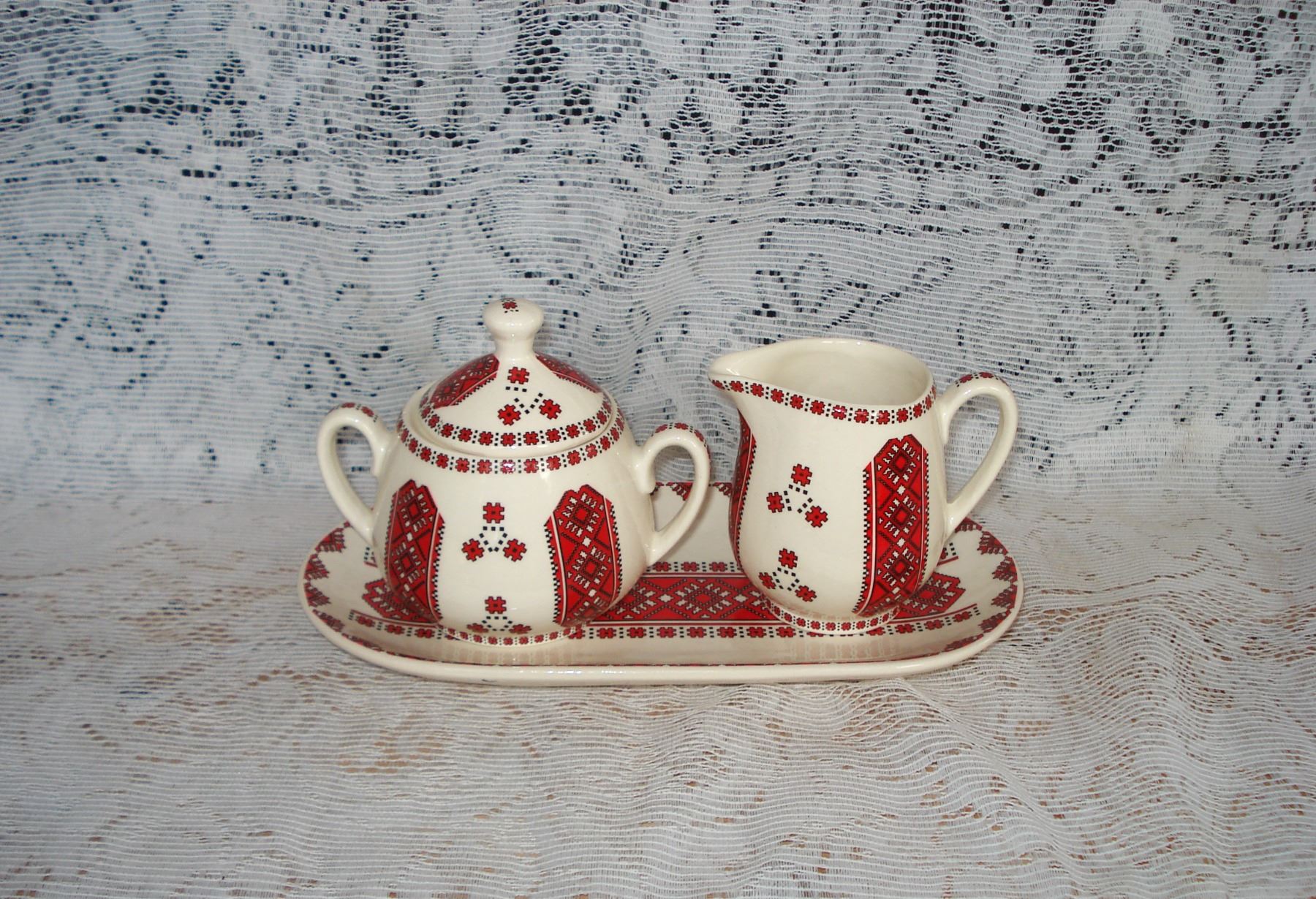 Vintage Ukranian Cream and Sugar Set