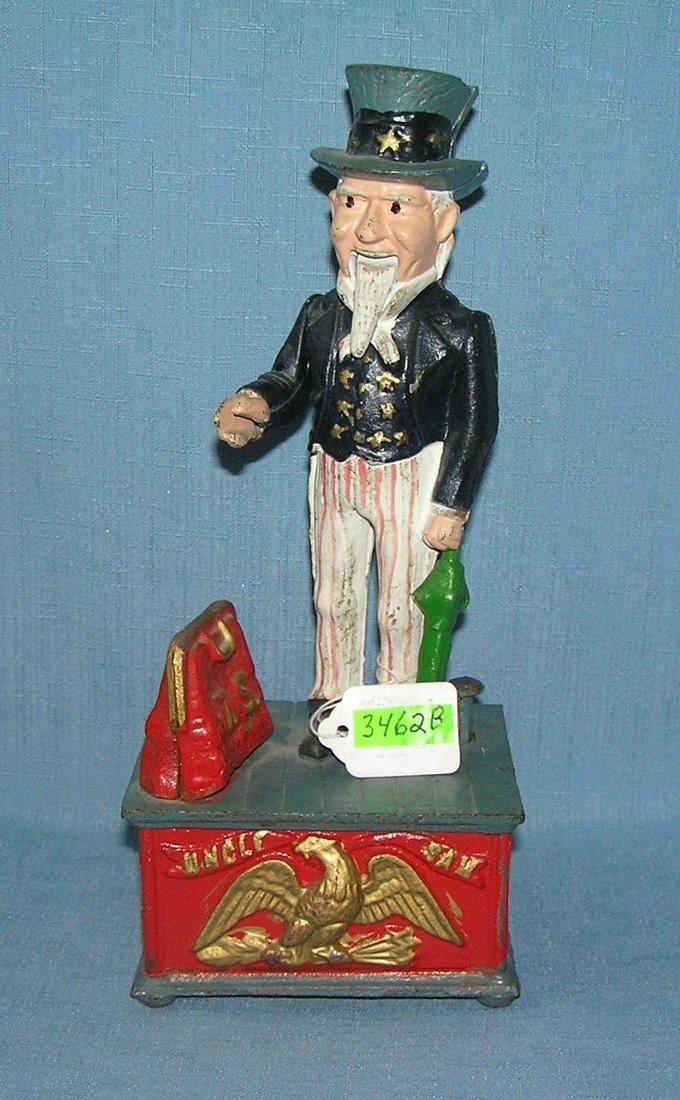 Vintage hand painted cast iron Uncle Sam mechanical bank est. value $300.00-$350.00