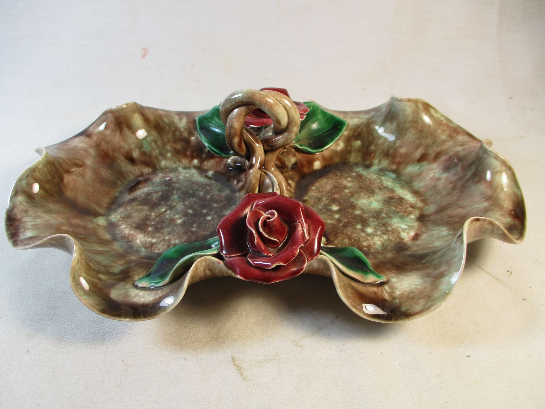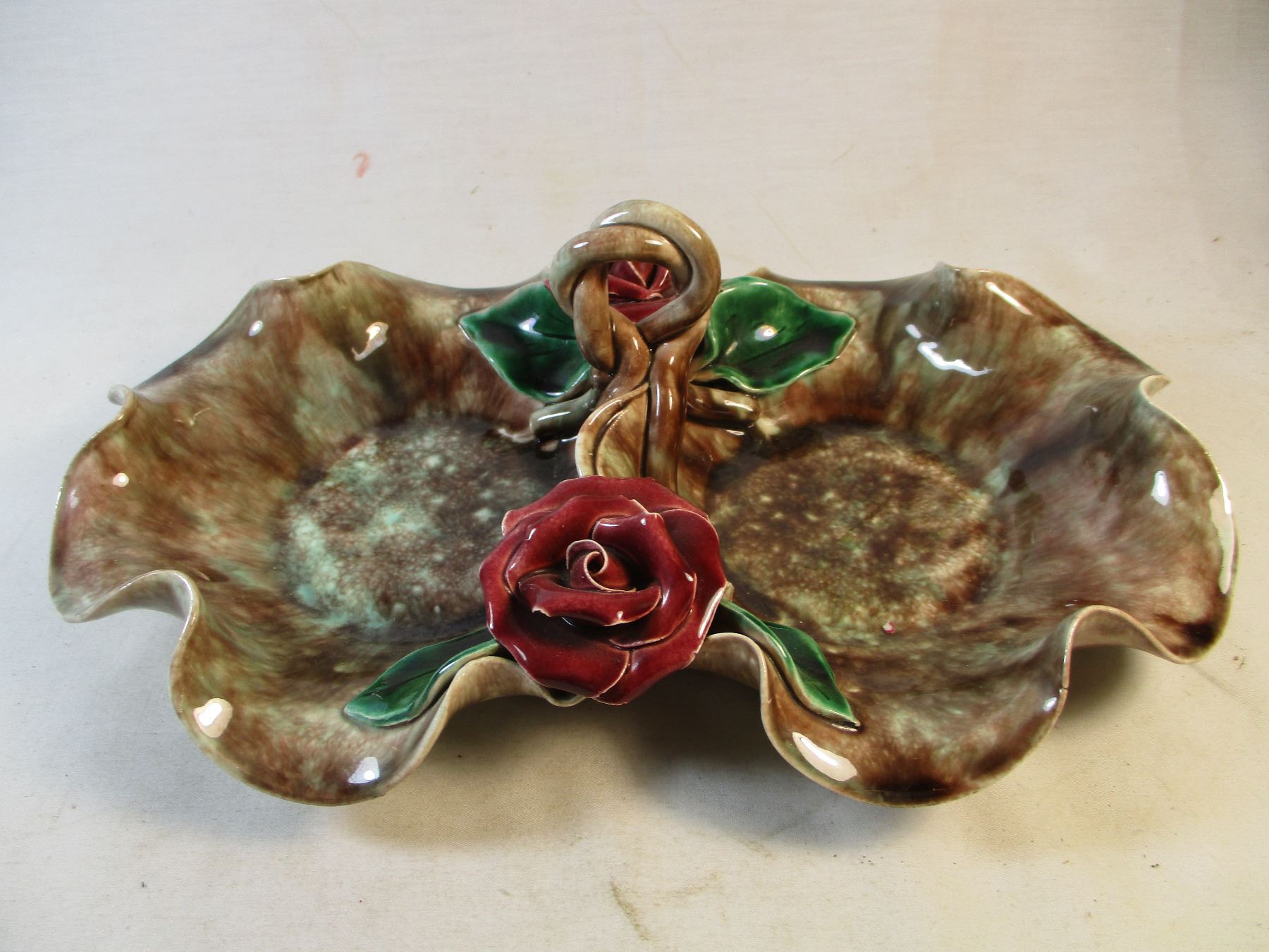 Beautiful unsigned candy dish with roses.