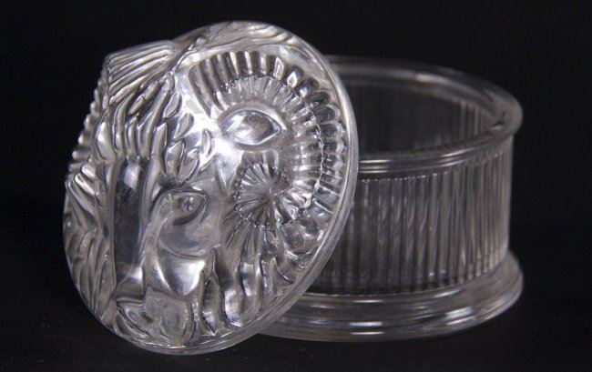 Vintage Val St. Lambert crystal Ram head keepsake box. (Size: See second photo for measurement.) Photos are part of the description representing the condition report. Pangaea Auctions urges Bidder's to view all attached photos.