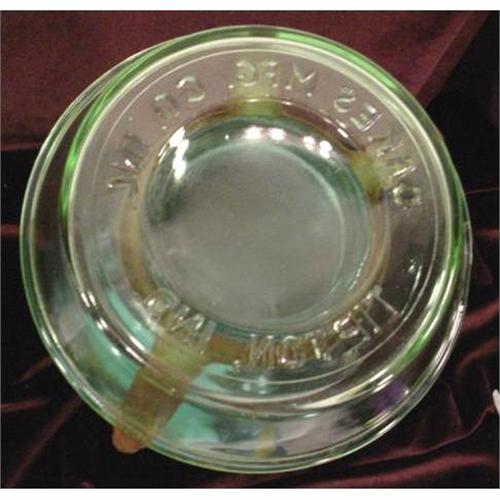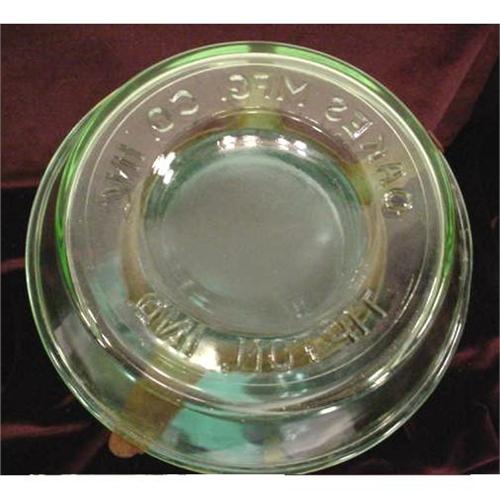 Vintage vaseline glass chick waterer with 2 tops and Ball mason jar. Tops are made by the Oakes Mfg. Co., Inc., Tipton, Ind. This is in very good condition, 10" high 6" wide. The metal clips usually rusted out, so it's very rare to find them intact. [278] NOTE: We may be wrong about this, we have been told it was also used as a bug trap.