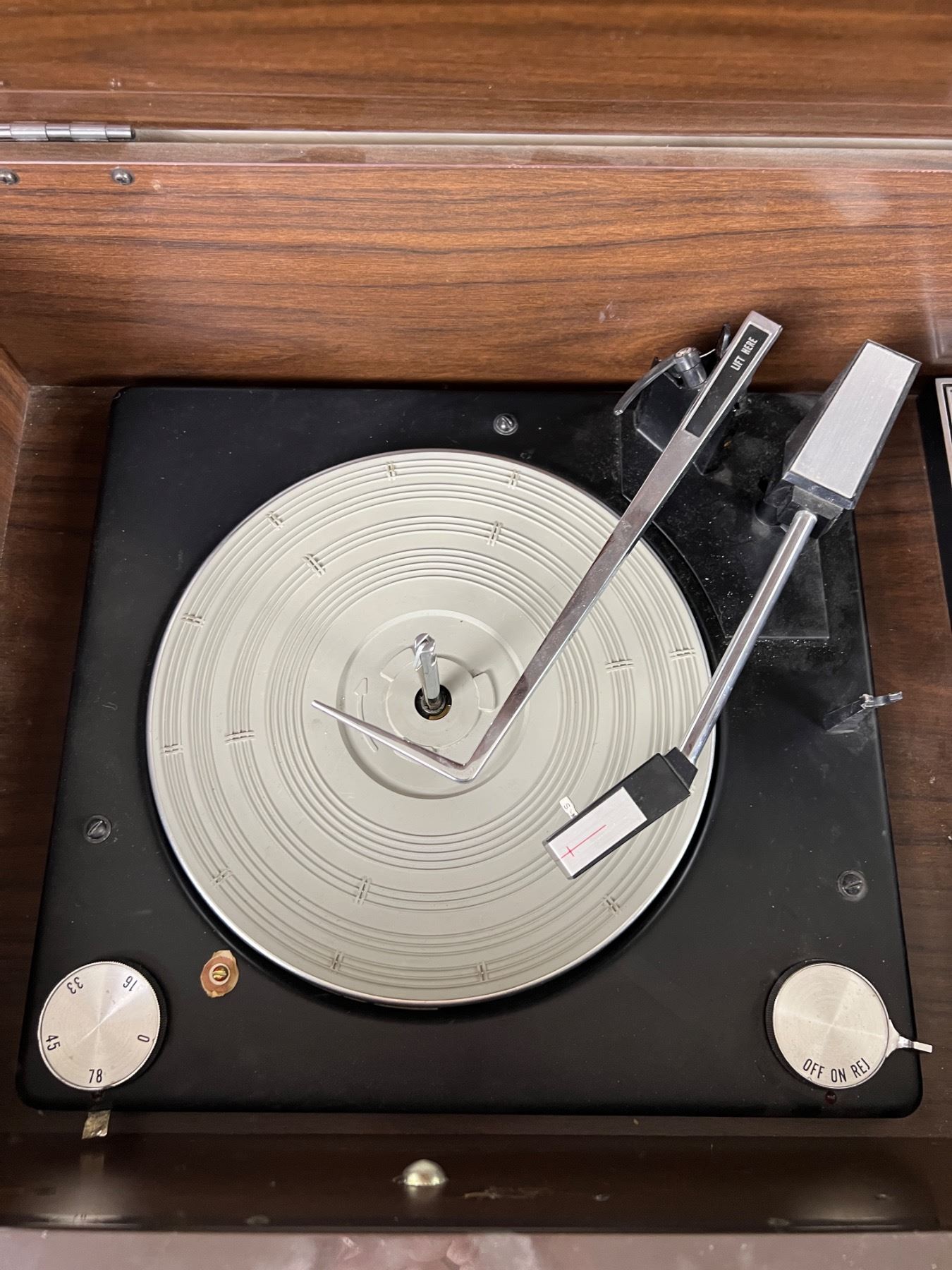 FM/AM working but needs some tuning of the antenna. Record player does not seem to be functional at the moment.