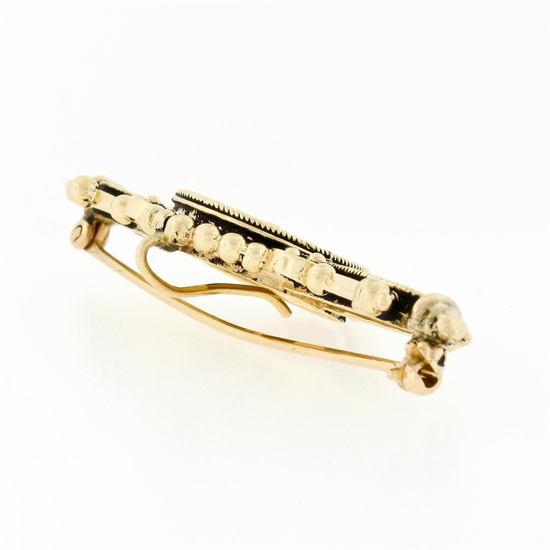 A vintage victorian revival solid 14k yellow gold bar pin brooch. Measures 18.8x48.6mm and weighs a total of 10.01grams.