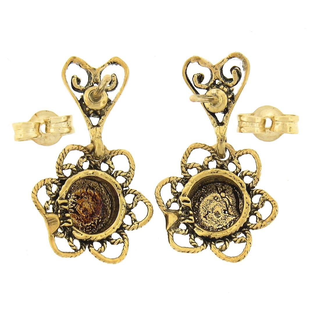 Vintage Victorian Revival 14k Gold Opal Textured Wire Flower Dangle Earrings