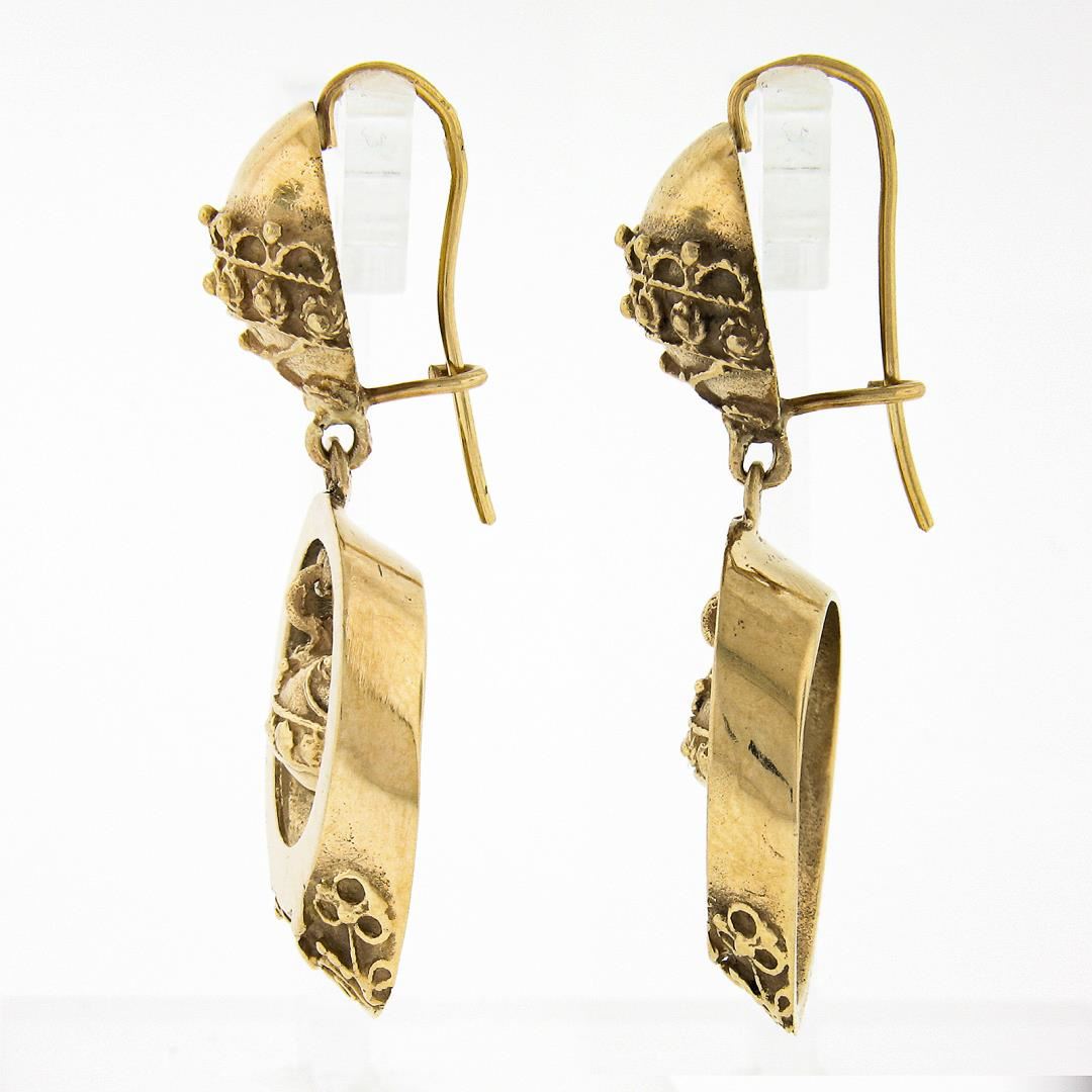 A vintage solid 14k yellow gold dangle earrings.The earrings measure approximately 43.25x17.10mm and weigh a total of 12.19 grams.