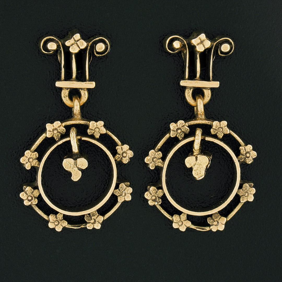 A vintage solid 14k yellow gold open dangle earrings.The earrings measure approximately 23.50x13.3mm and weigh a total of 4.61 grams.