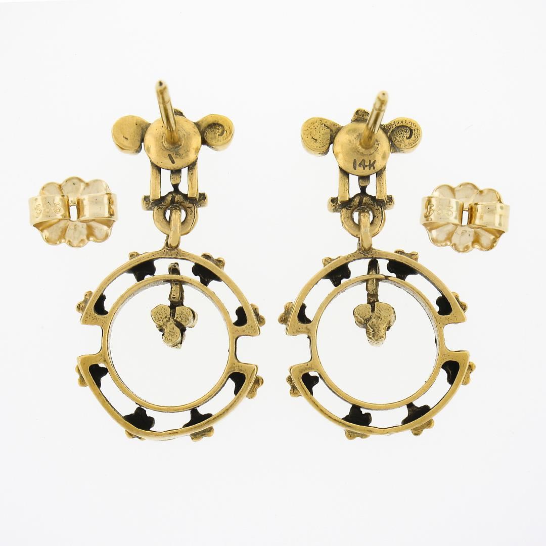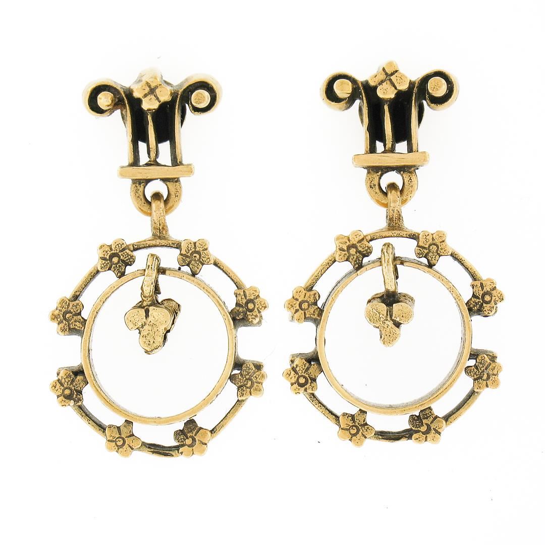 A vintage solid 14k yellow gold open dangle earrings.The earrings measure approximately 23.50x13.3mm and weigh a total of 4.61 grams.