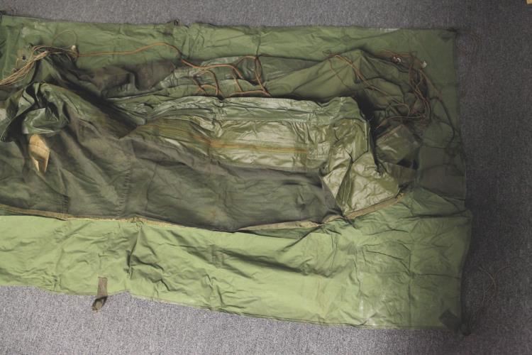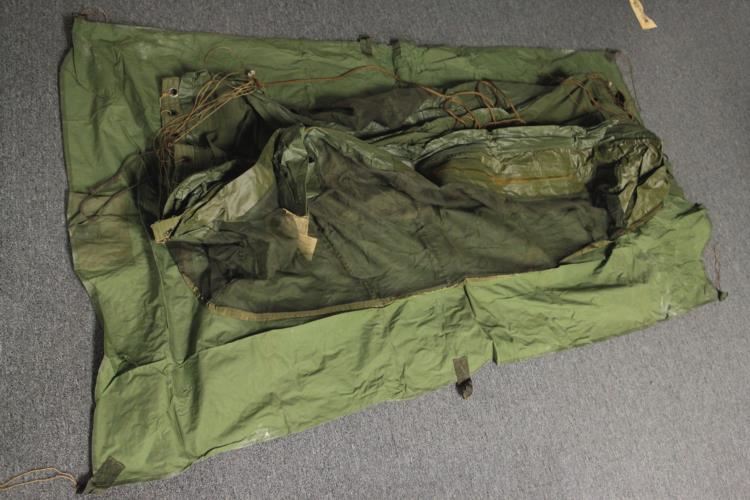 Vintage WWII Army Green One Man Pup Tent Screened Field in good condition and fully functional. Add this unique tent to your collection or bring it along on your next backpacking trip.Measures 78" x 44"