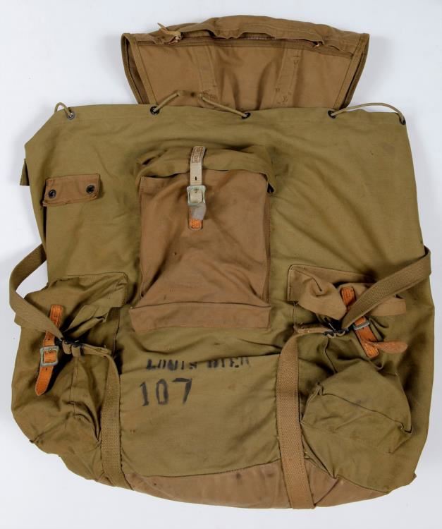 Vintage WWII US Army Backpack Rucksack Canvas BagBoth bags are authentic WWII era army bags that belonged to Louis Bier, who carried them during his tours in Europe during WWII.