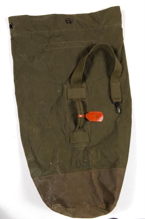 Vintage WWII US Army Green Canvas Duffle Bag RucksackGreat quality authentic WWII US Army duffle bag that belonged to Lawrence A. Peterson