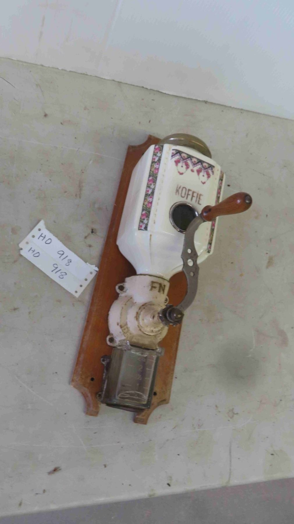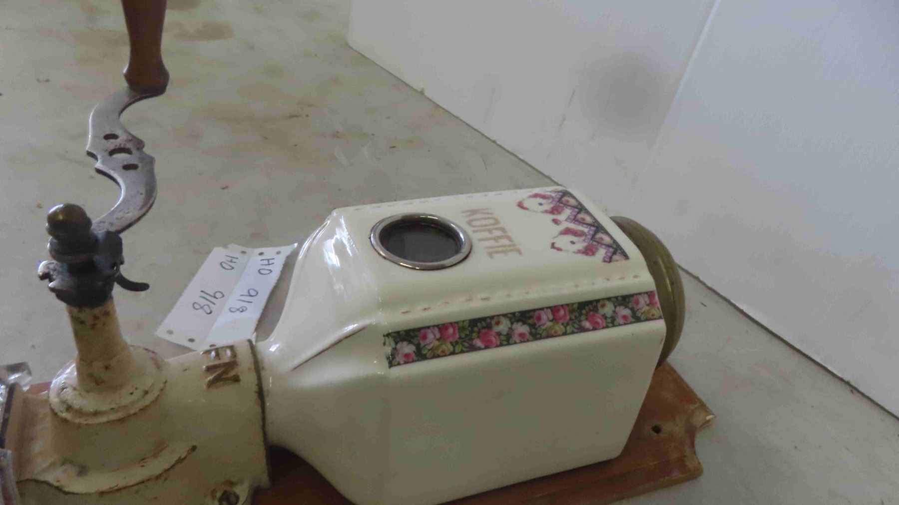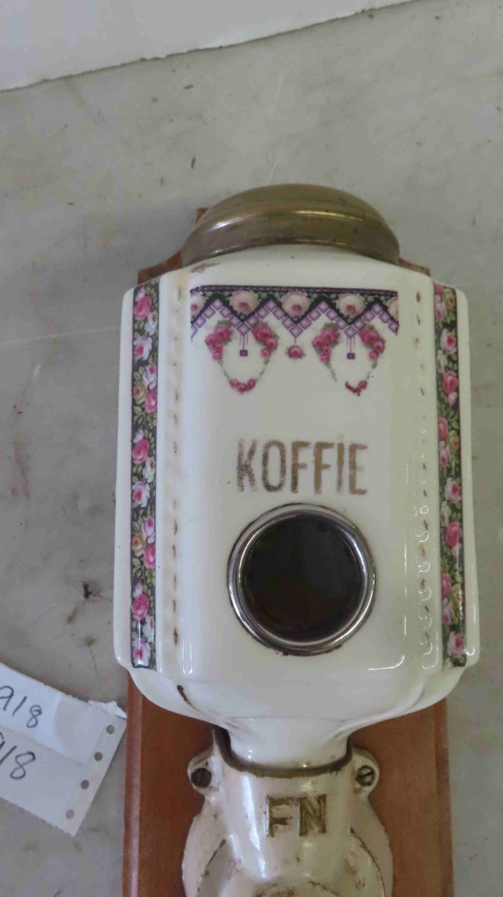Vintage Wall Mount Coffee Grinder Porcelain and Cast - European Spelled As 'Koffie'