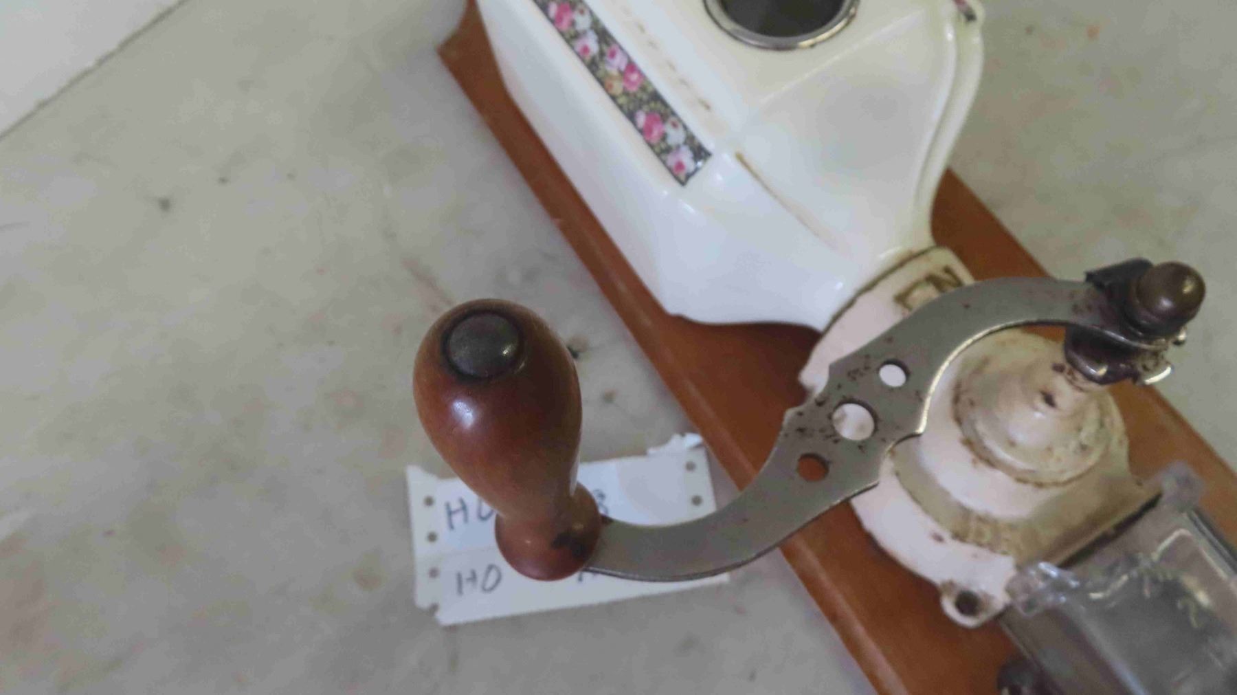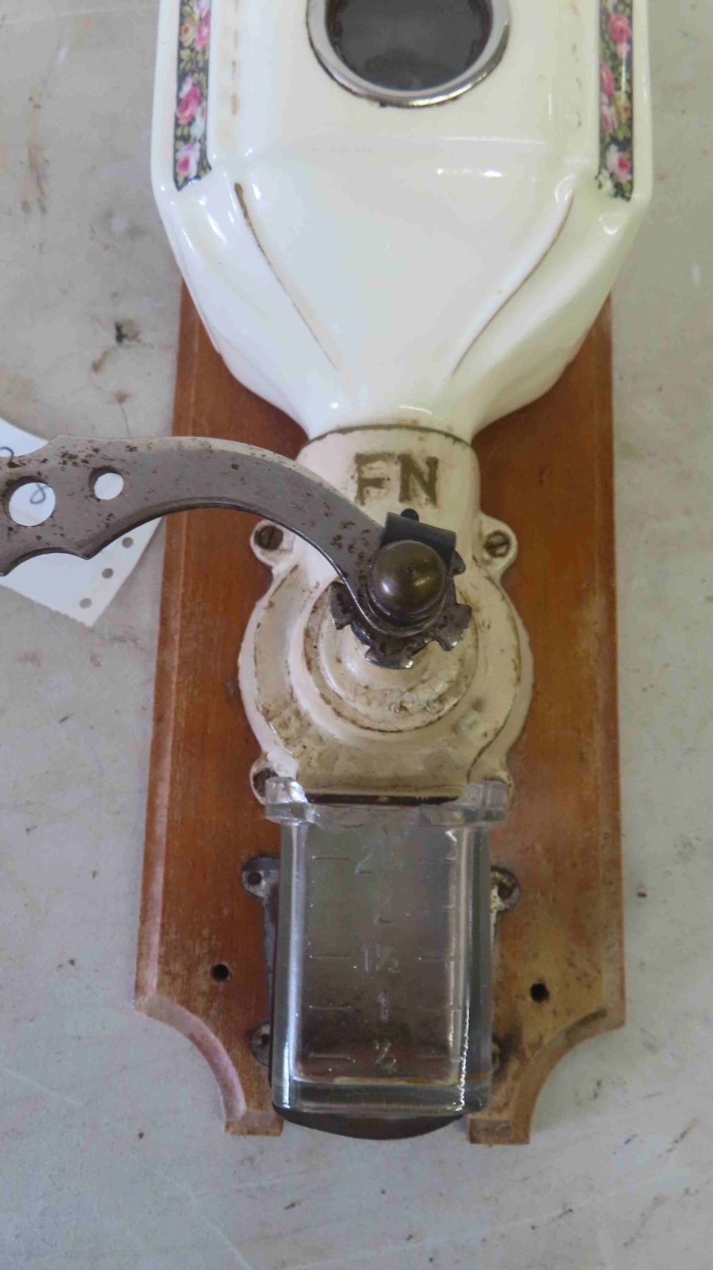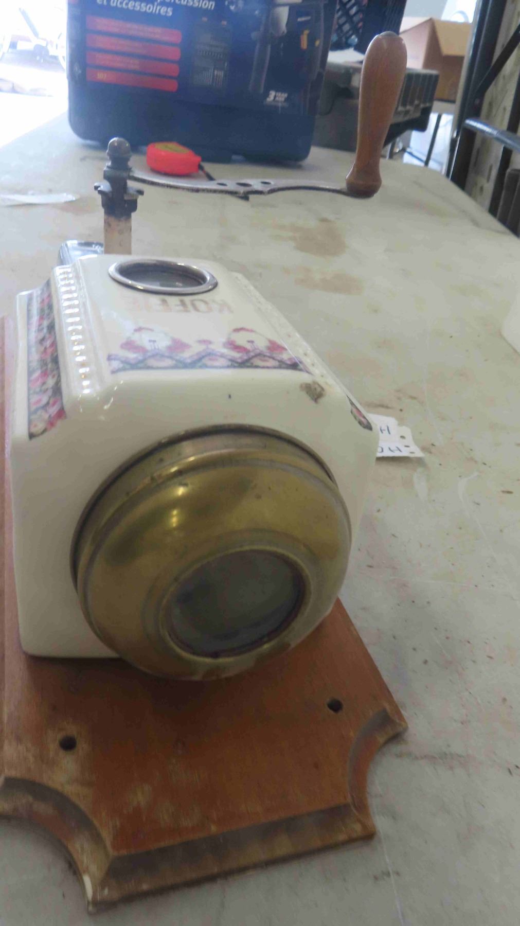 Vintage Wall Mount Coffee Grinder Porcelain and Cast - European Spelled As