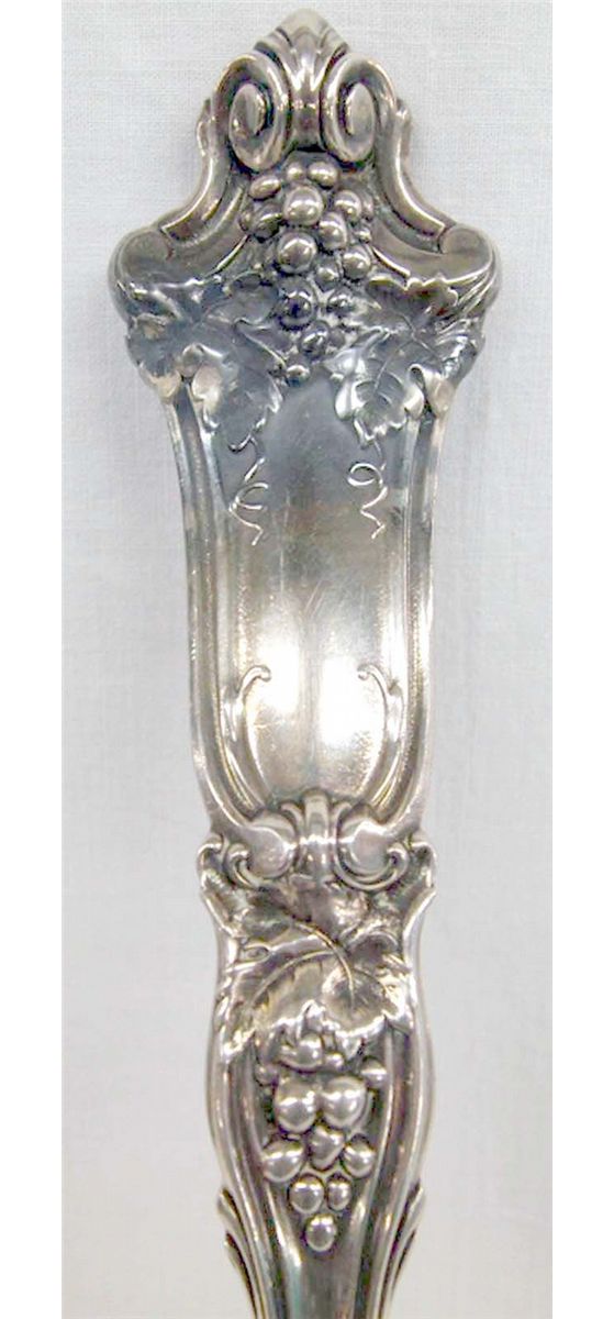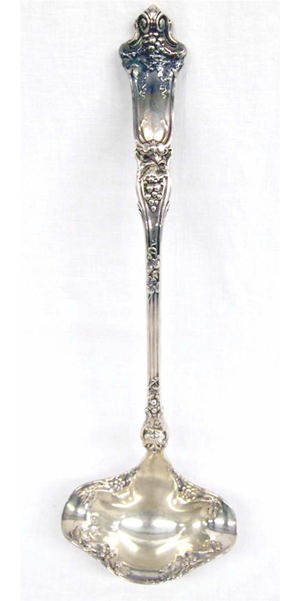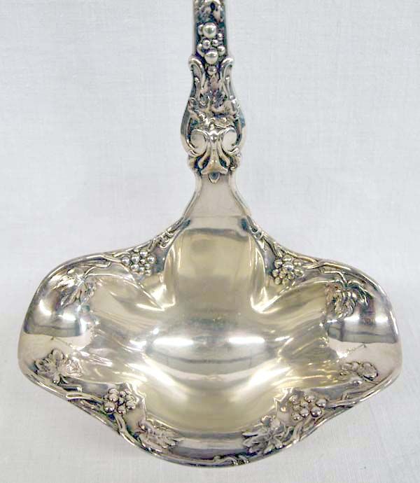 Vintage Wallace Punch Ladle ''Grape'' Pattern 1912. Ladle measures a generous 15 1/2'', silverplate from ''1895 R. Wallace'', double spout ladle, substantial piece.