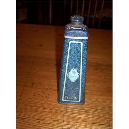 This is a great Watkins talcum powder tin.Wonderful condition.Has powder in it.Stands 5 3/4" tall.Very Deco looking.