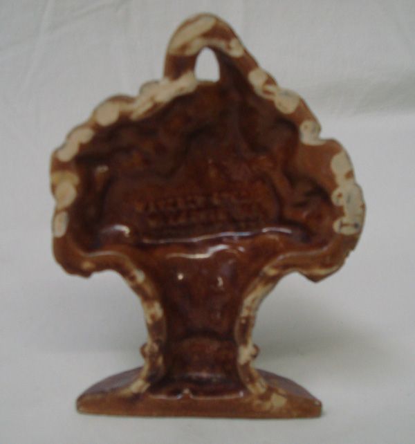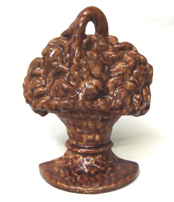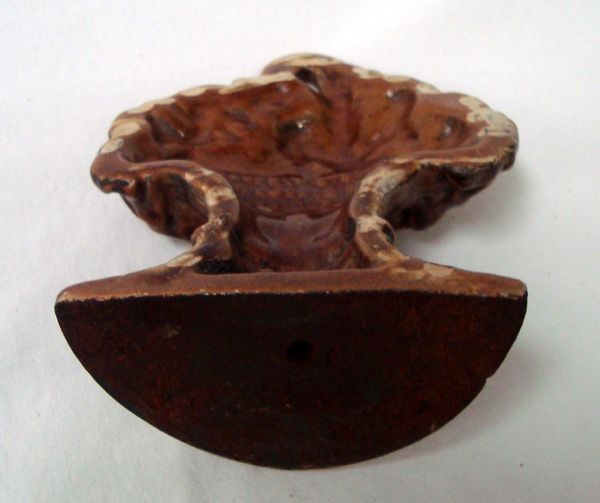 Vintage Cast Iron Flower Vase Door Stop, marked on back Waverly Studios, measures 6''H x 4.5''W, glaze over cast iron