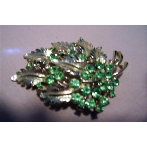 <tr><td>Title:Vintage Weiss Green Rhinestone Brooch</td></tr>