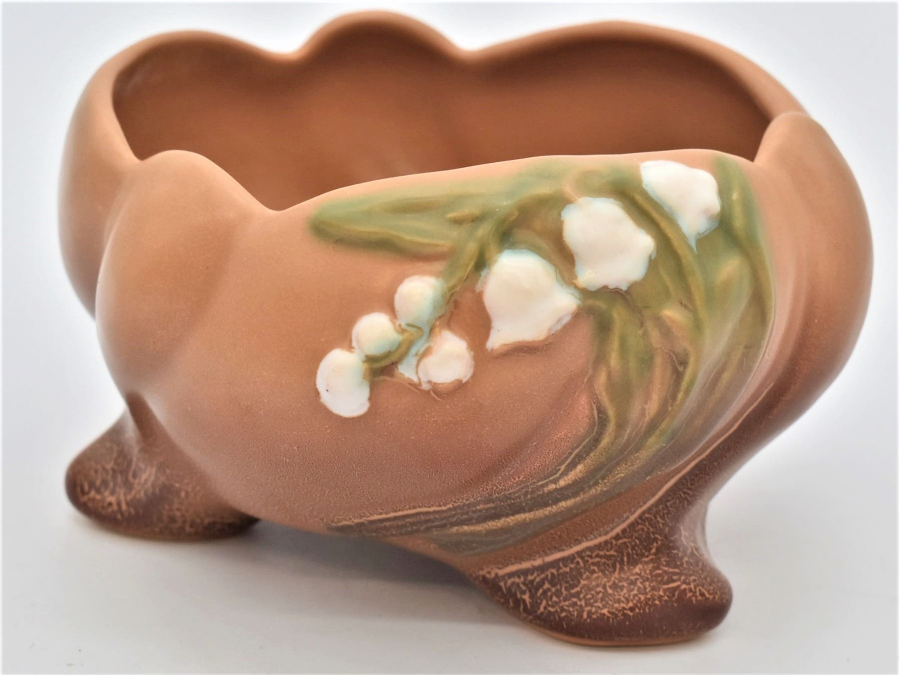 Vintage Weller Pottery Vase, measures 3.5'' x 6'', with white Canterbury Bells, marked on the bottom