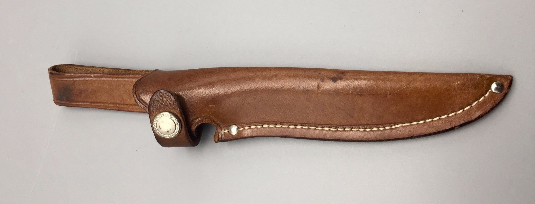Maker: Western. Approx. Age: Vintage. Size: Measures 8.5" overall with sheath. Additional Info: Comes with a leather sheath. Condition: Good for its age, normal wear expected. Please look closely at the pictures - they are an important part of our description. Shipping: There will be a $5 handling / packaging fee for shipping this lot. The actual cost of postage will be added on top of that.