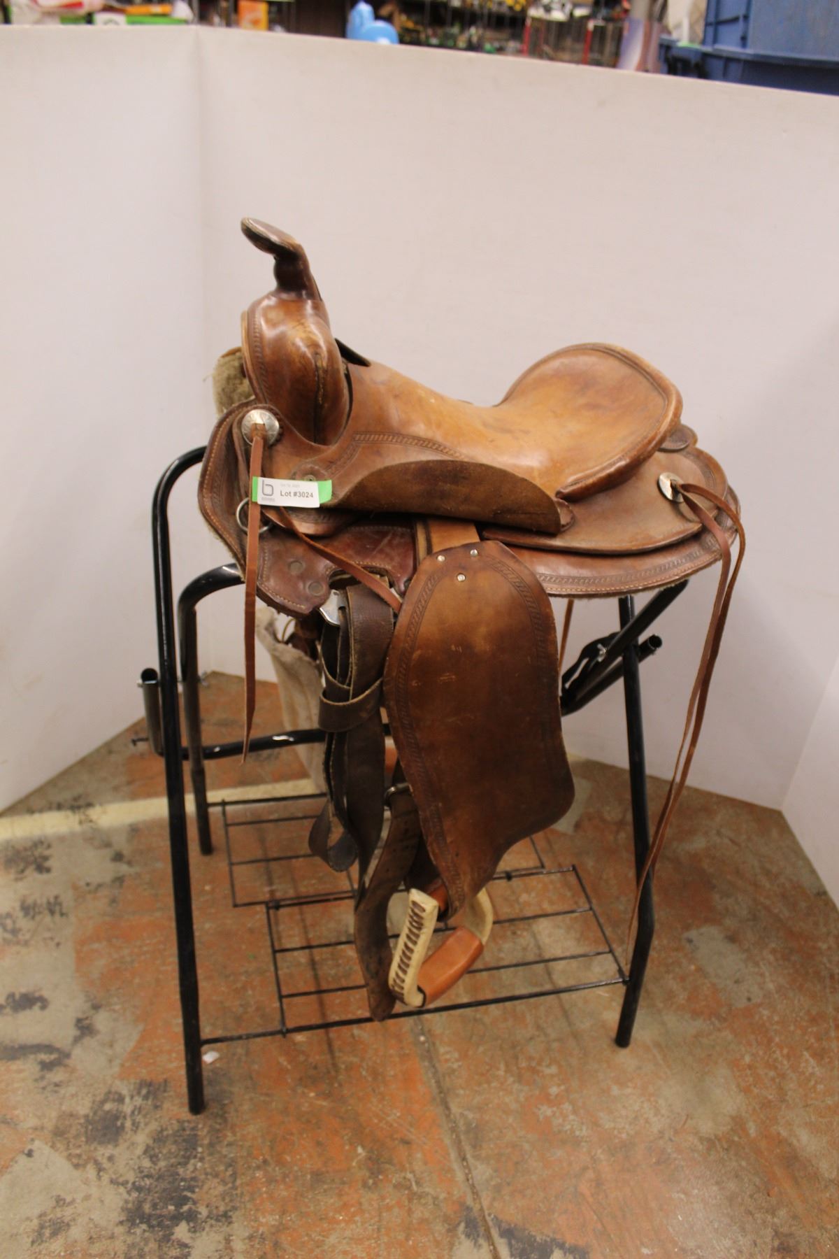 Vintage Western Rawhide Riding Saddle with Stirrups - Stand not Included