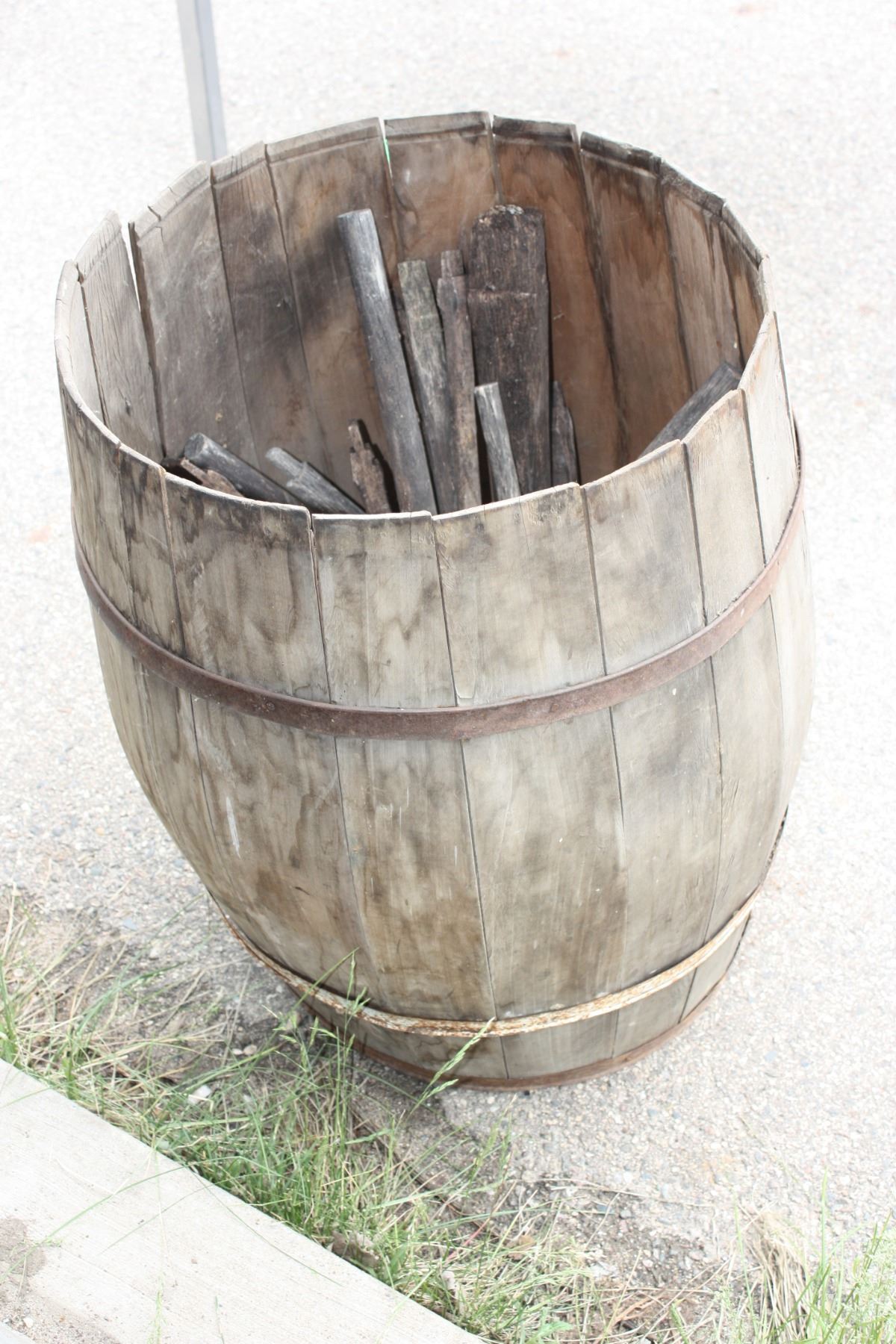 Vintage Whiskey Barrel and Contents 20" Diameter and 30" T