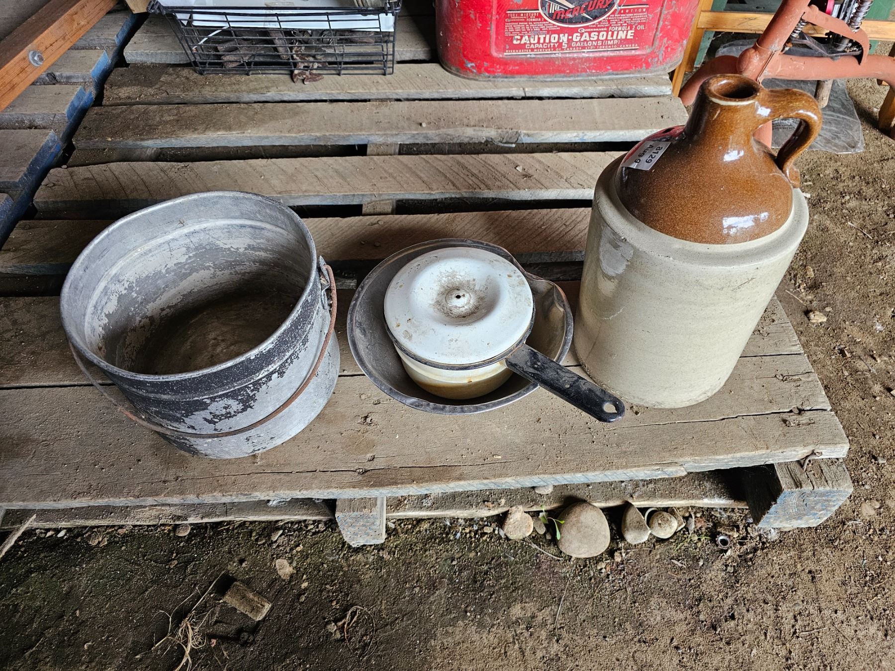Vintage Whiskey Jug/Enamel Pot/Bucket/Mixing Bowl