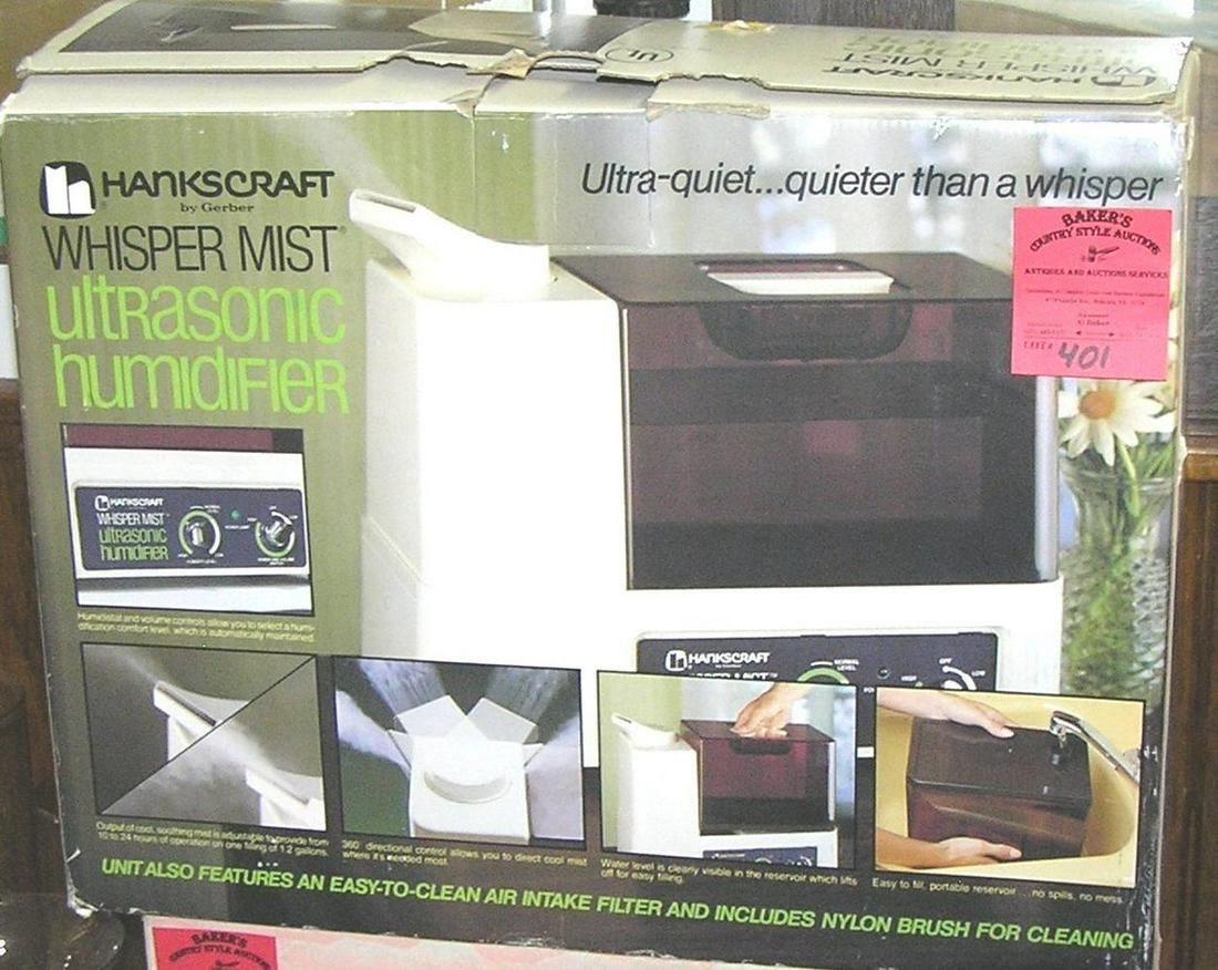 Vintage Whisper Mist ultrasonic humidifier with original box est. value $40.00-$50.00