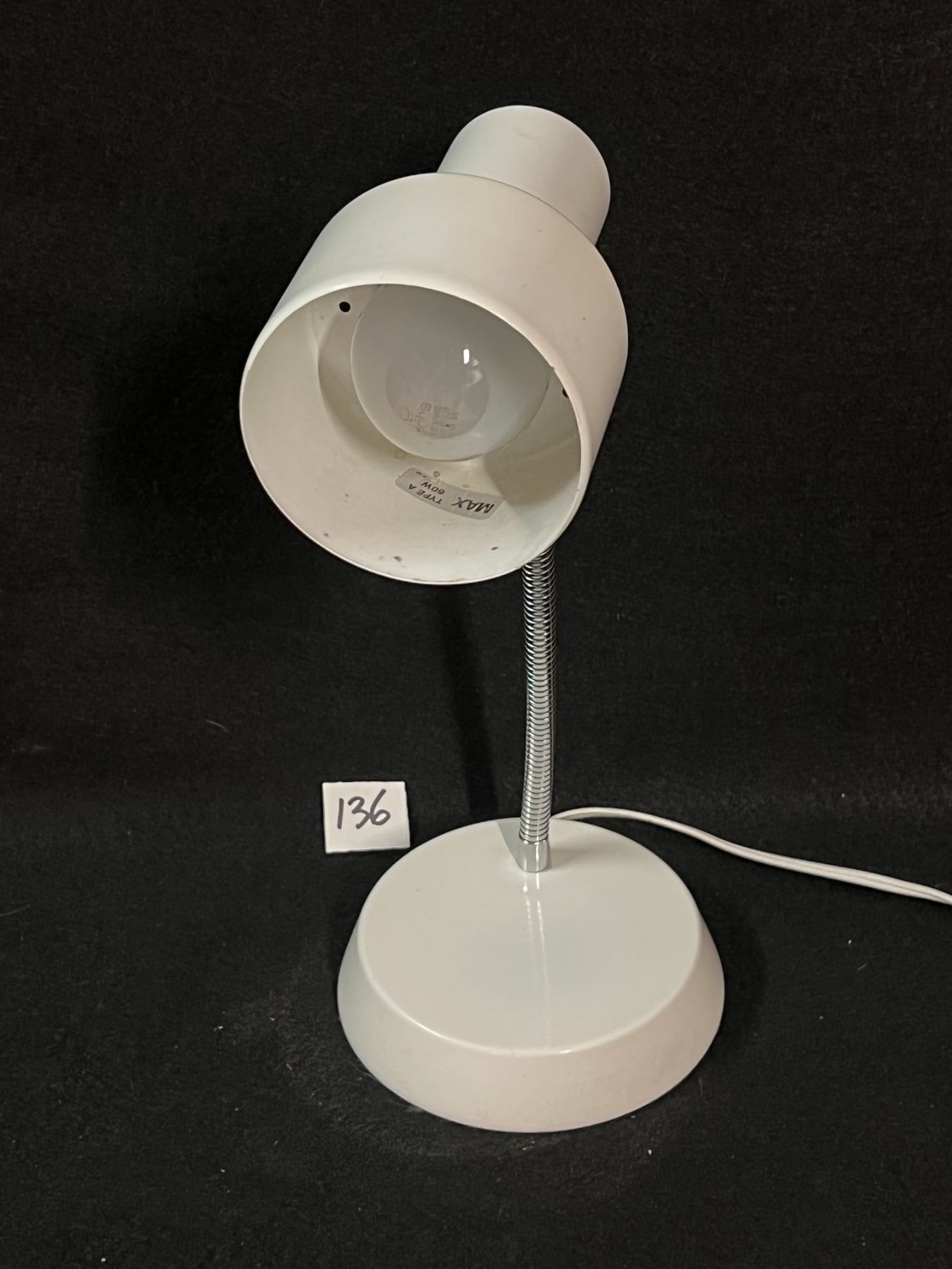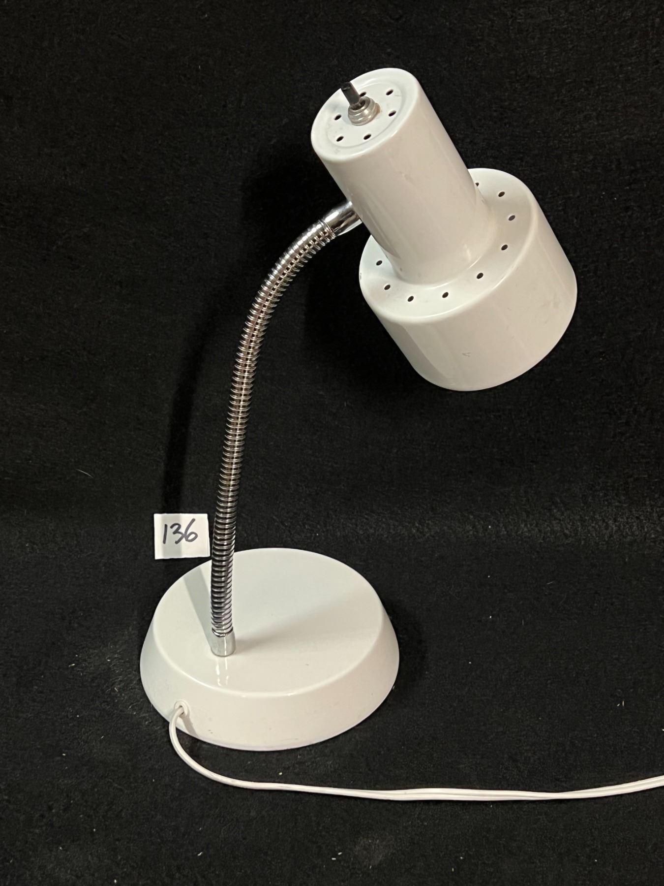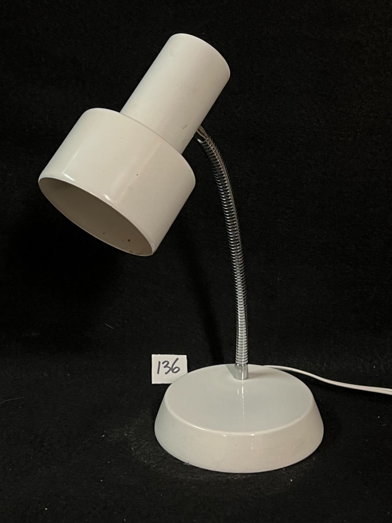Vintage White Metal Adjustable Gooseneck Lamp Adjusts to approx 16"