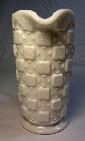 Vintage White Milk Glass, Pressed Squared Pattern Pitcher
