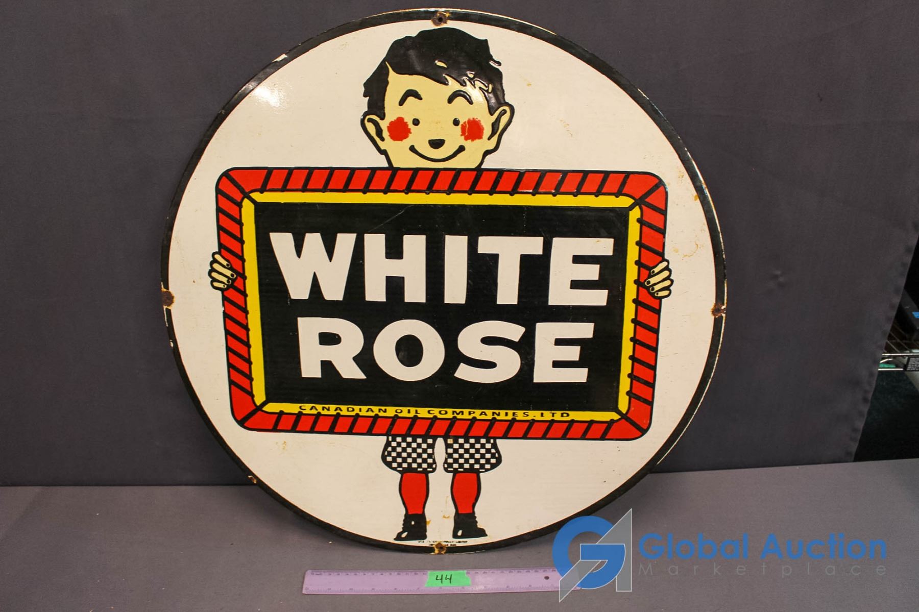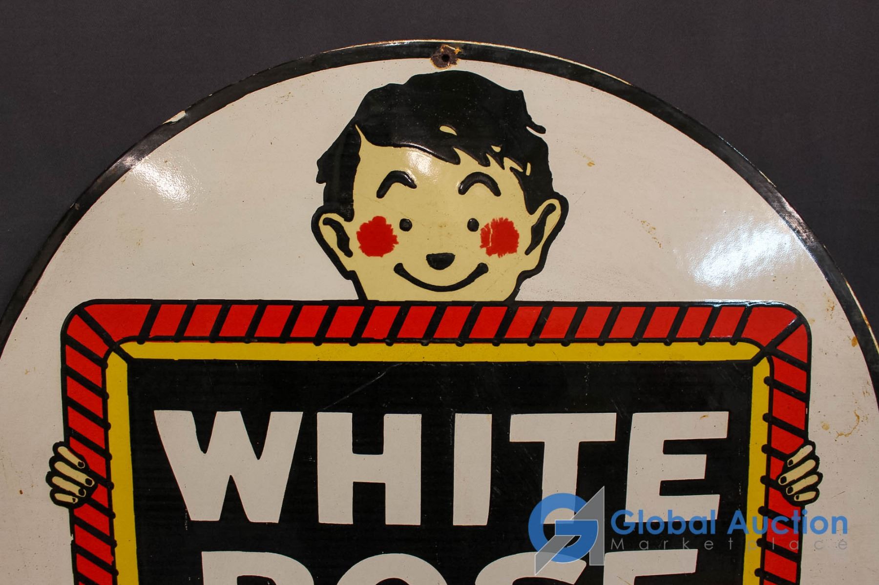 Vintage White Rose Round Porcelain Sign - Approx 24" Wide